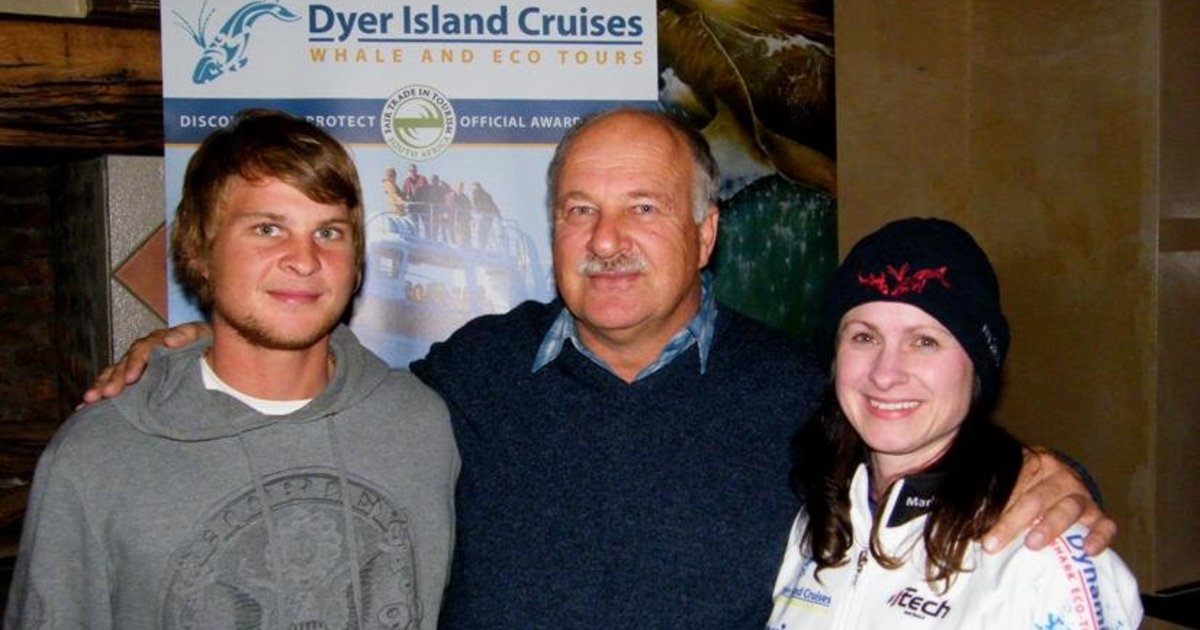 Vlnr is Dickie en Wilfred Chivell saam met Brenda du Toit tydens ‘n aanbieding oor seevoëls in die Great White House