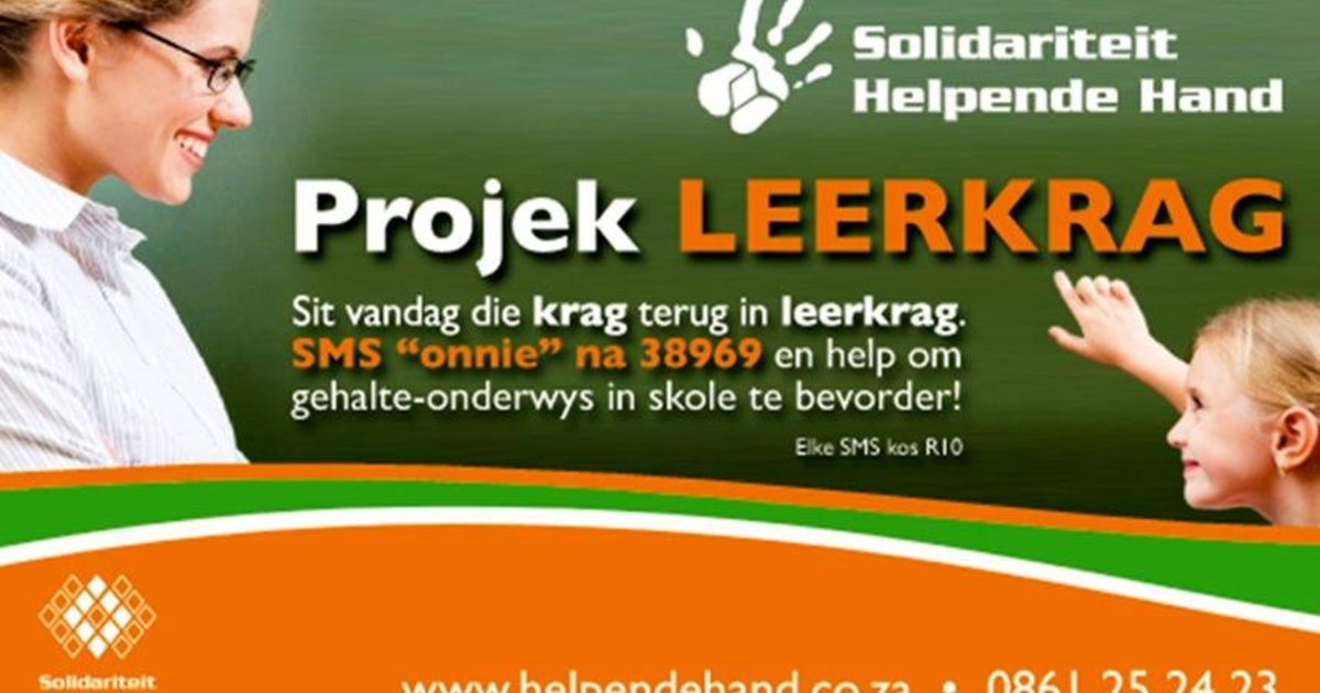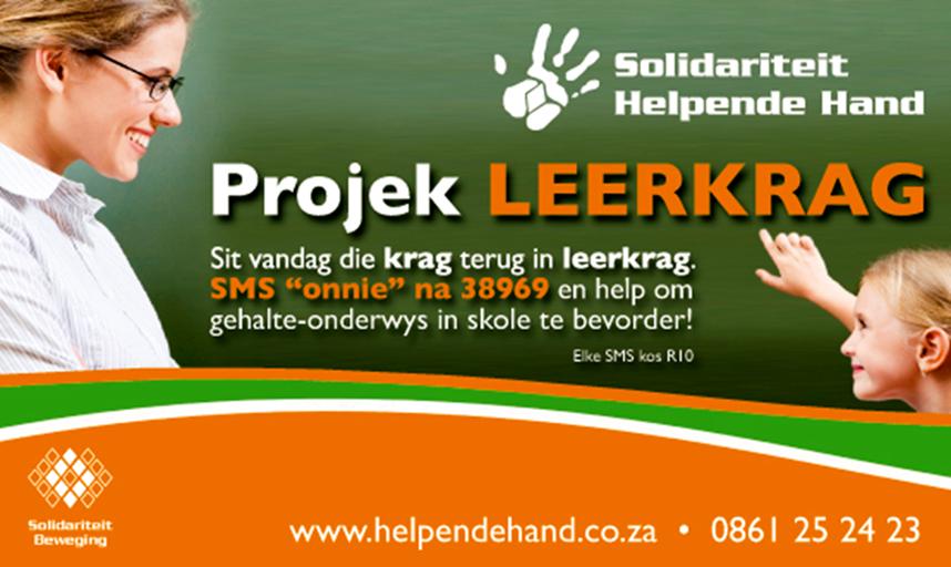 Om by te dra tot Helpende Hand se projekte, sms die woord “hand” na 34388 en 'n agent sal jou skakel 'n sms kos R2).
