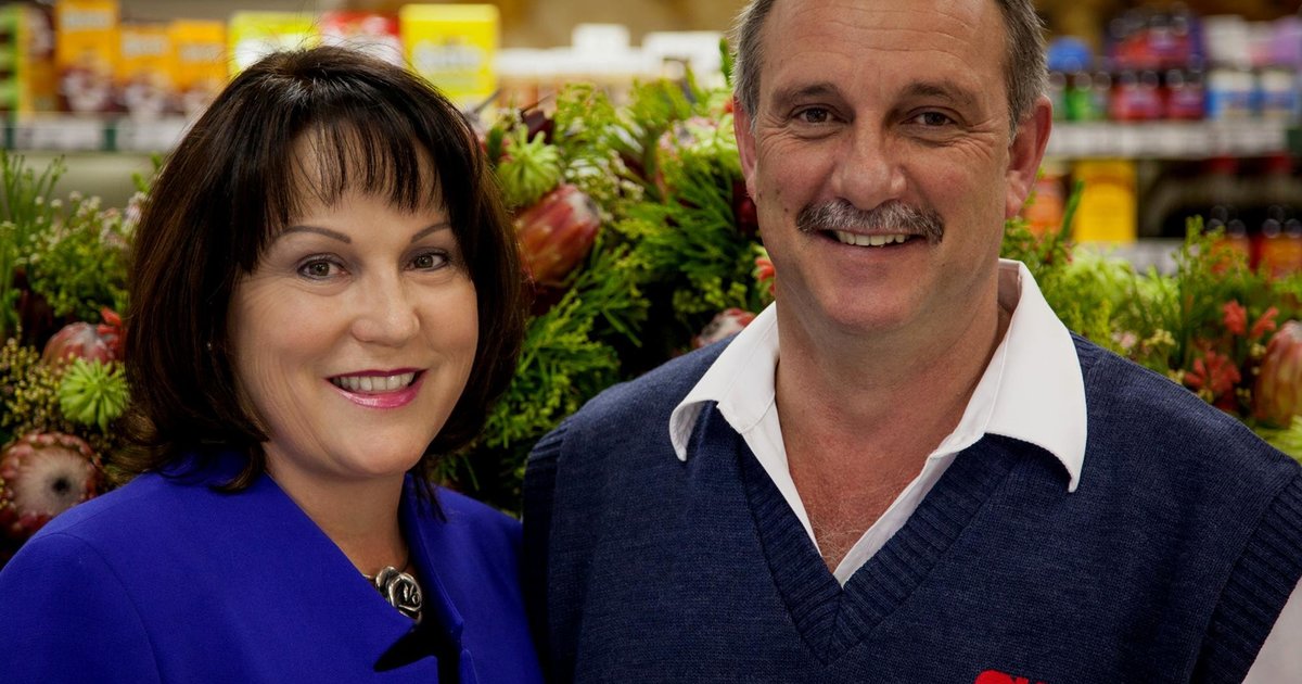 OK Foods Gansbaai se trotse eienaars Petra en Chris van Rensburg.