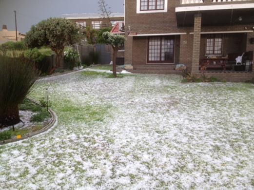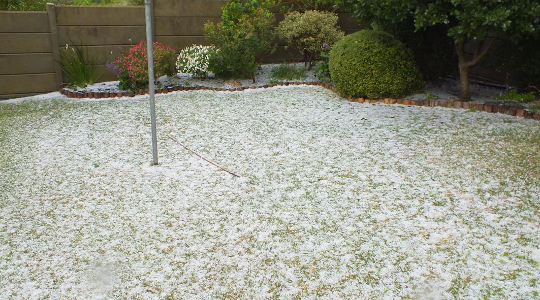 'n Wolkbreuk, soos nog min gesien, het Dinsdagmiddag om 17:45 De Kelders in 'n haellandskap omskep. Willie Botha van Vyferstraat 81 het hierdie foto ingestuur. Onder: De Villiersstraat 23 De Kelders van die De Jonghs