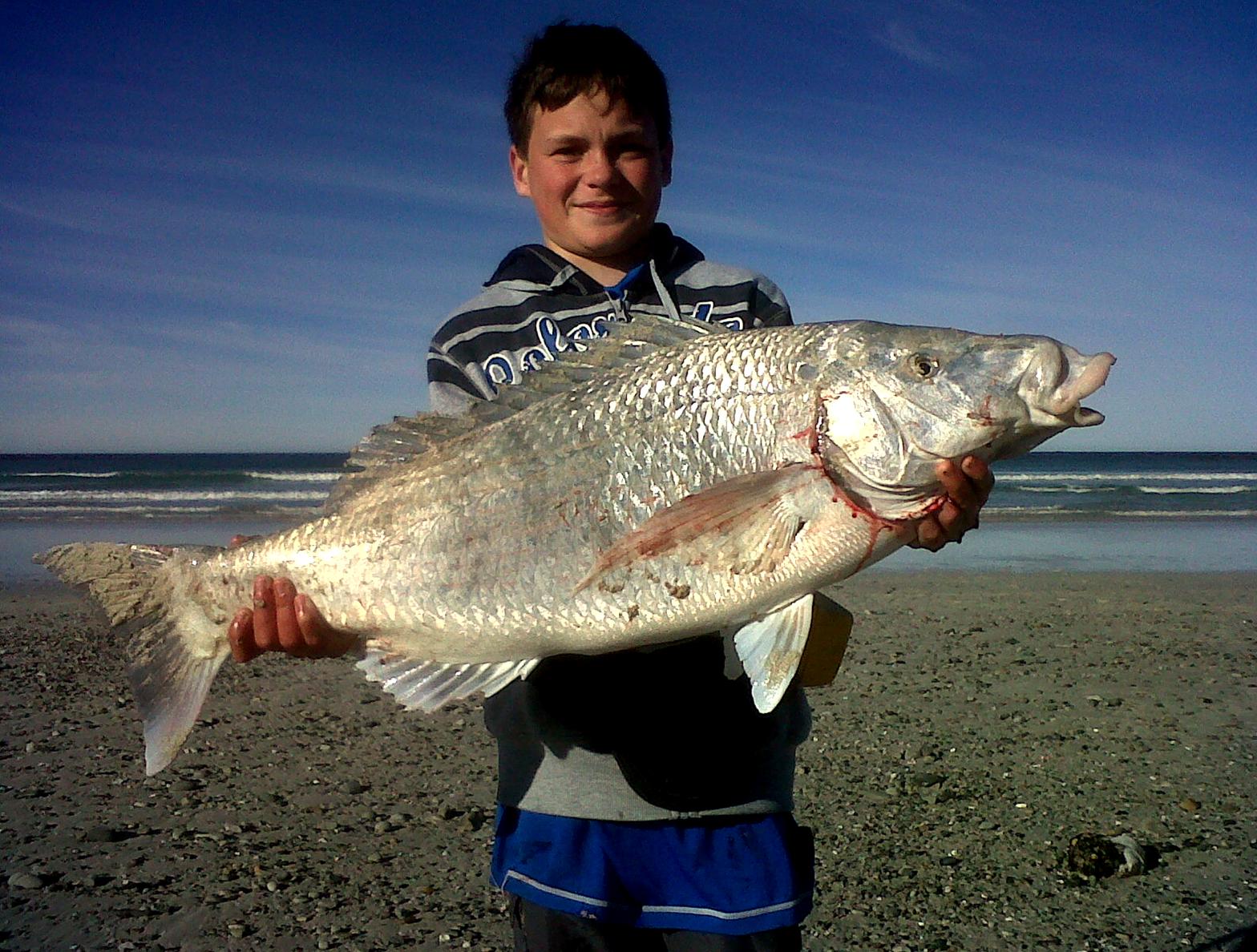Marco Lloyd (14) het Saterdag oggend 'n steenbras van 8kg met 'n 2/0 hoek naby Pearly Beach gevang. Hy is die kleinseun van Susan & George Lloyd te Kleinbaai. Dit is moontlik die grootste vis wat die afgelope naweek gevang is, die Provinsiale Boothengel Kompetisie (bl. 29) ten spyt.
