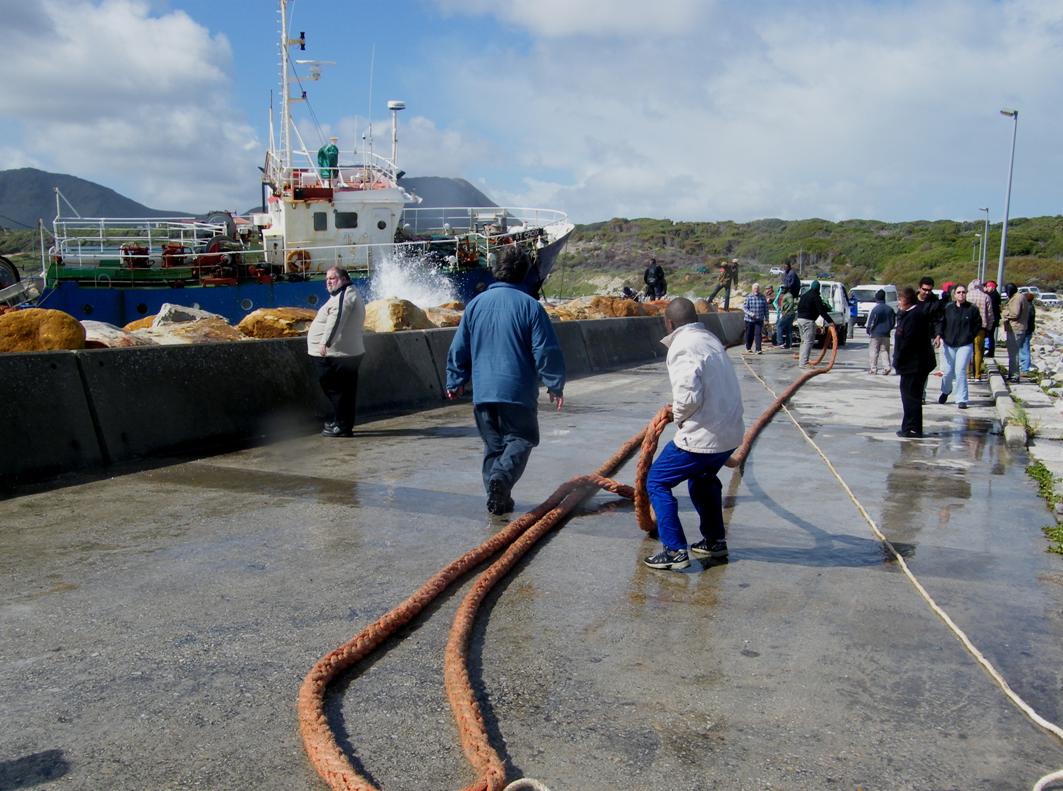 “Ons het pas klaargemaak met algemene herstelwerk wat sowat 5½ maande geduur het om die boot vir die seisoen gereed te kry en nou is alles daarmee heen.” Bertie sê dit kan tussen R1½ en R2m kos om die boot te herstel, wat dit bykans nie die moeite werd maak nie. Om te wag vir ‘n nuwe boot, kan hulle tot soveel as 3 jaar buite aksie stel. Interessante opmerkings oor die redes vir die 4de boot, sover vasgestel kon word, wat op soortgelyke wyse deur erge stormweer vernietig of beskadig is, is aangehoor. “Eerstens is dit vanselfsprekend die geweldige stormsee en rukwinde, maar dit is nie al nie,” het Bertie gesê. “Dan is daar ook nog die ‘insuig’ van sterk strome seewater in die hawe in, en die teenoorgestelde wanneer die seewater weer ‘uitgesuig’ word.” Die massa water wat tydens stormweer oor die hawemuur spoel, beteken dat tonne seewater binne sekondes oorspoel en groot skade tot gevolg kan hê. Na bewering kan die probleem verminder word indien die Dept van Openbare Werke eerstens aandag aan die hawemuur moet skenk en tweedens heelwat meer dolosse op strategiese plekke sal plaas. “‘n Totale vloot van vistreilers kan op hierdie wyse in erge stormsee en rukwinde uitgewis word,” het Bertie gesê.