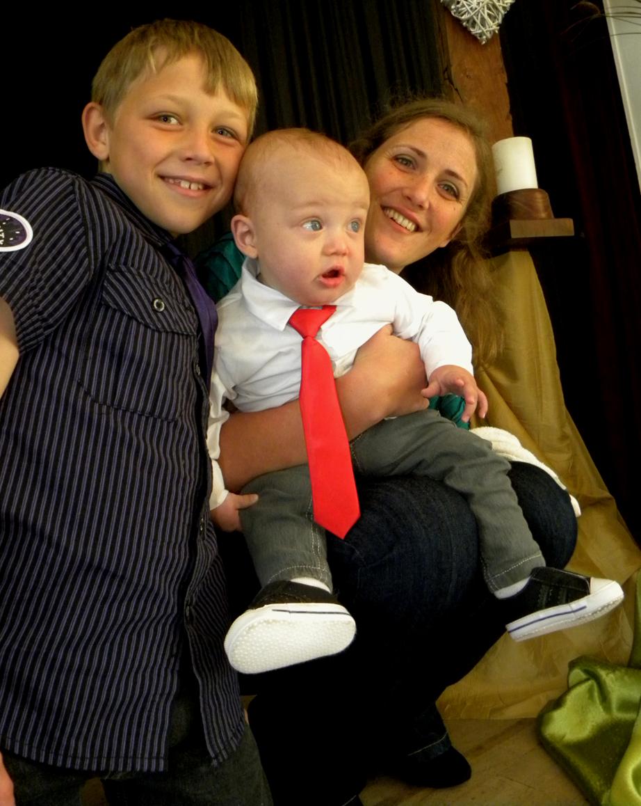 Links: Elzaan Bosch saam met baba Nicholas en broer AJ wat hom ingebring het.