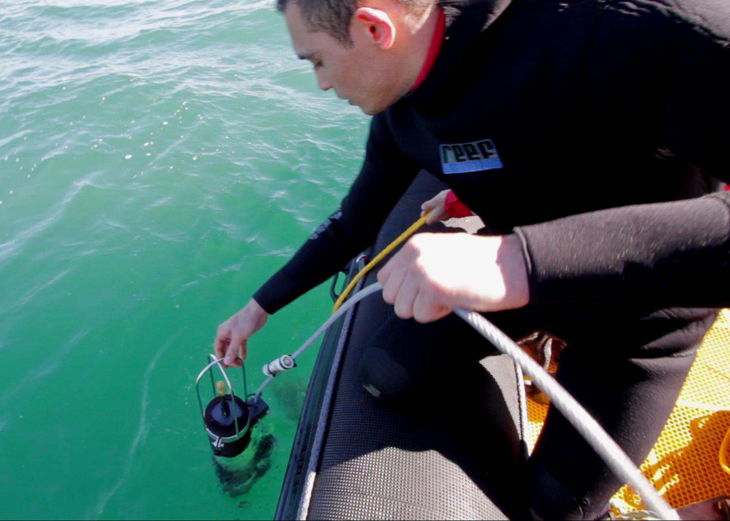 A big moment for Katja Vinding Peterson: The first acoustic logger goes into the sea