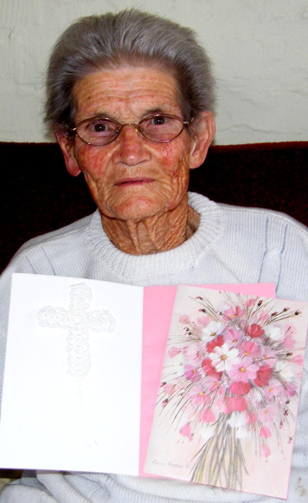Die 90-jarige Johanna Eygelaar wat 240 kruisies vir die Vrouedagbyeenkoms gehekel het
