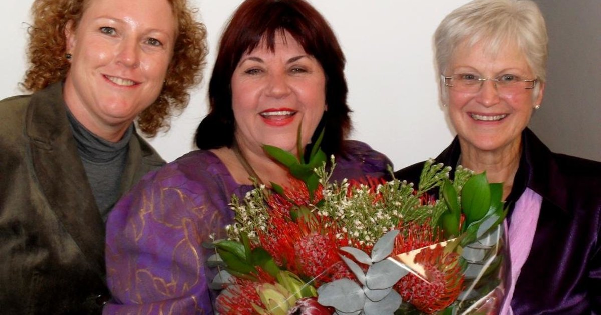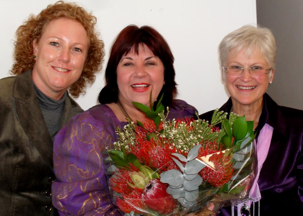Vlnr is Fransil Kotze, Elsabe Aldrich (gasspreker) en Elcine Hulme tydens die oorhandiging van ‘n blyk van waardering aan die gasspreker