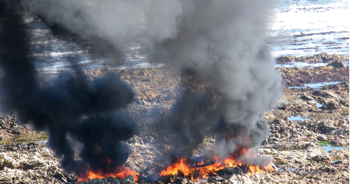 Die walviskarkas wat by die getypoel in Gansbaai uitgespoel het, is onlangs deur Gansbaai Munisipaliteit uitgebrand