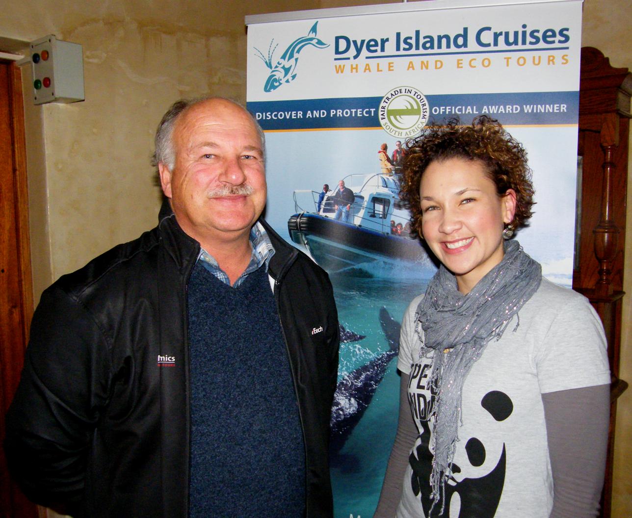Janine Basson was die gasspreker tydens ‘n interessante Mariene-aand van Dyer Island Conervation Trust (DICT) in die Great White House restaurant. Janine is die Bestuurder van Sea Food Consumer Outreach (WWF-SASSI). Haar aanbieding het gehandel oor die benutting van seekosse in die kleinhandel en restaurante, gepaardgaande met die bewaring van bedreigde visspesies.