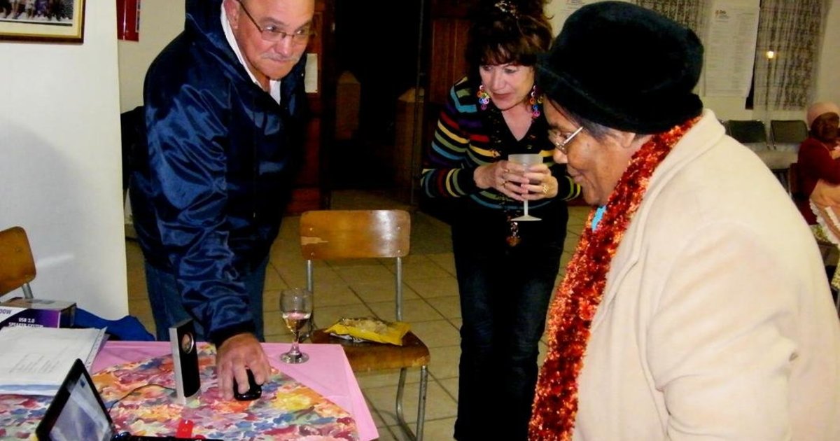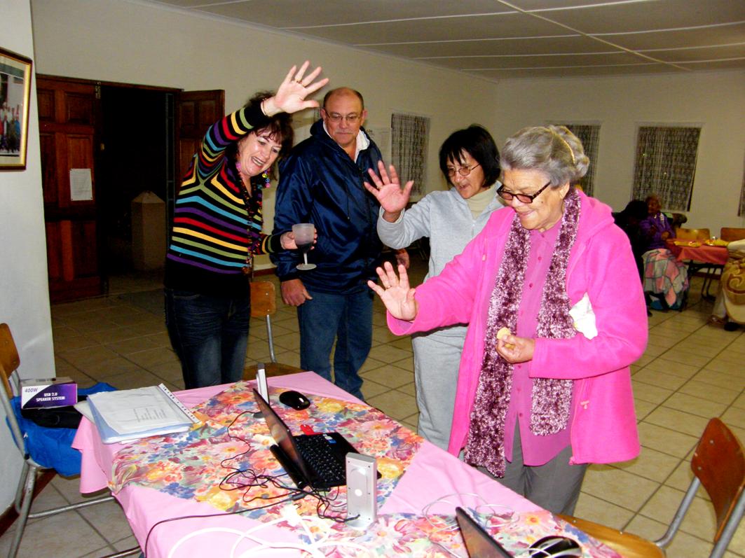 “Stanley is a former coal mining area so the people there have experienced many personal hardships in the past and because of that have a clear understanding of the needs of people less fortunate than themselves,” het Jack gesê. “We had 80 odd in attendance last night, the evening consisted of a buffet supper, live music and a very good raffle. I was able to get everything sponsored so all monies raised goes to Silwerjare. The good news is that we raised £2,200.” Margi Muller van Franskraal het op die ooreenstemmende tydstip ‘n geselligheid te Silwerjare Dienssentrum gereël, waartydens Jack met die bejaardes via skype kon kommunikeer. Jack se skype-oproep, ‘n onbekende tegnologie aan die bejaardes, is met groot opgewondenheid afgewag en daar is sommer lekker met hom gekommunikeer, terwyl sy gaste in Engeland die bejaardes kon sien. “Ons is sedert April vanjaar met ‘n ‘Silwerjare-projek’ besig wat deur Jack en Anita Doyle geïnisieer is,” vertel Margi. Jack en Anita is al vir die afgelope 12 jaar vakansiegangers in Gansbaai en ook jarelange vriende van Margi en haar eggenoot, Steve.
