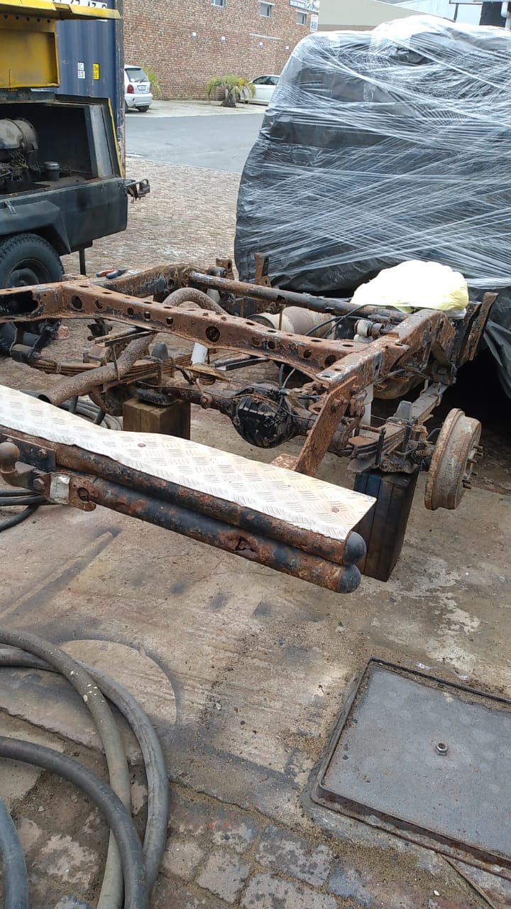 See images below of a bakkie's rusted chassis recently sandblasted and coated with primer by Gansbaai Engineering.