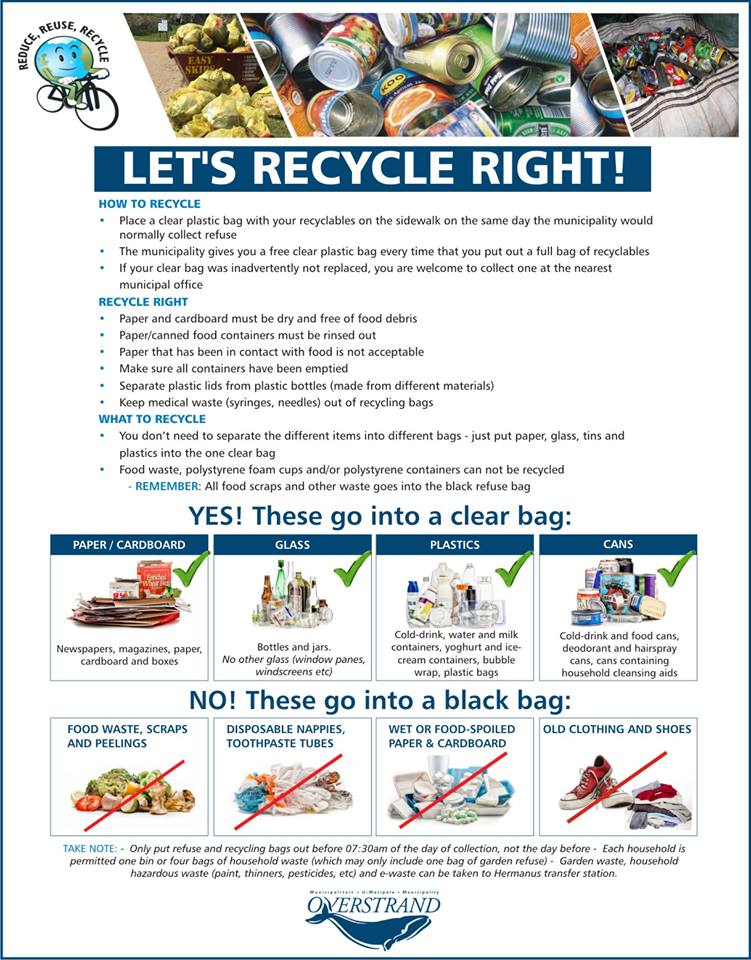 On the refuse removal day, the clear plastic bag will be removed and transported to the recycling plant where it will be sorted and baled. For every clear plastic bag placed out by a household, a new one will be supplied as replacement.