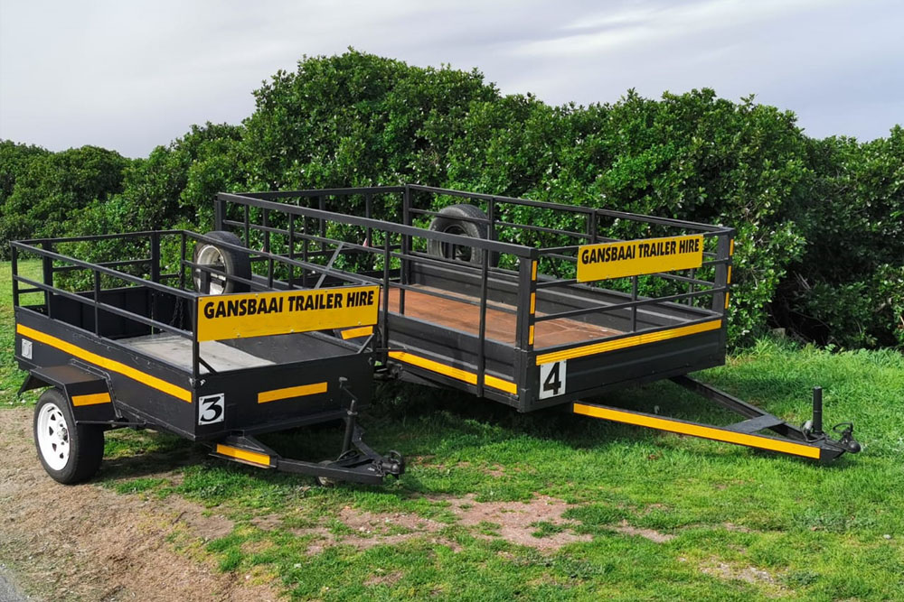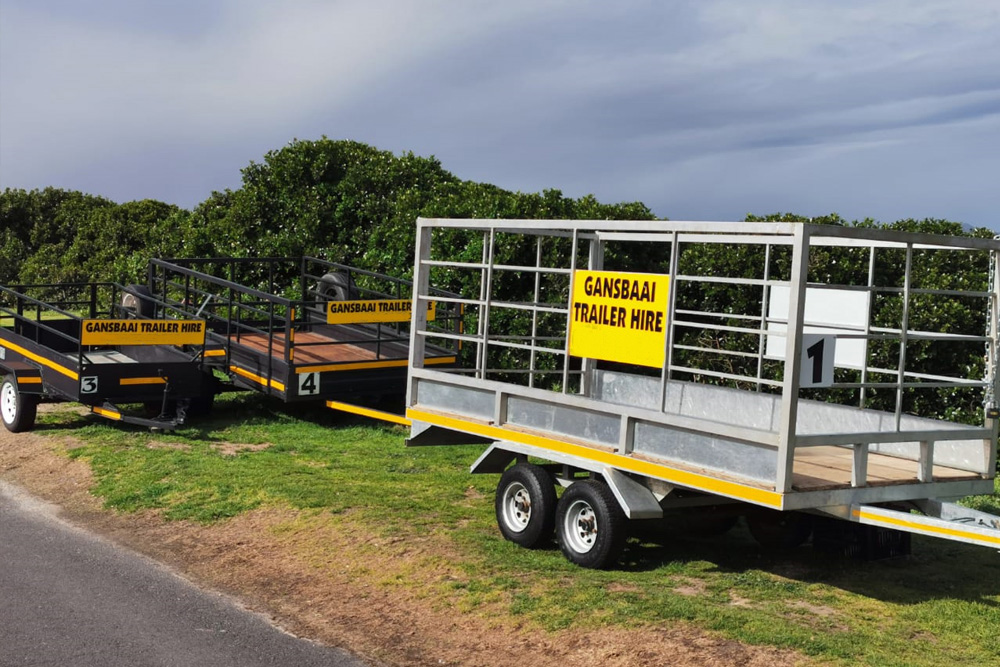 Gansbaai Shuttle Services use the premises of the Gansbaai Car Wash in the main road of the town as a trailer hire depot. Alternatively, trailers can be dropped and collected at homes in the Gansbaai area by arrangement.