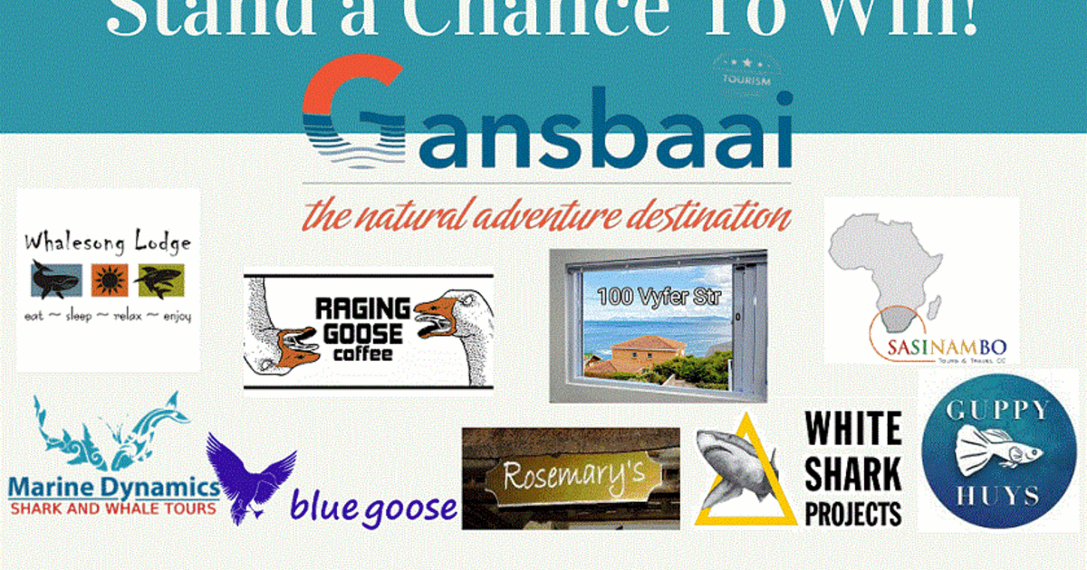 Sponsors: Dyer Island Cruises, Whalesong Lodge, Thyme at Rosemary's Restaurant, Guppy Huys Oceanfront Eco Bungalow, White Shark Projects, Blue Goose, 100 Vyfer Street, Sasinambo Tours & Raging Goose Coffee.