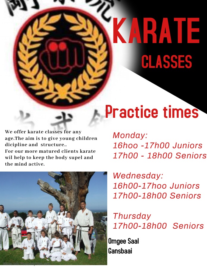 Goju Ryu Karate Gansbaai is a local karate club offering karate classes and self-defence training for children and adults of all ages and levels of experience. Sensei Yusuf Meyer wears his Shodan with pride and closely follows the Goju Ryu’s ‘Dojo Kun’. Karate classes are small and manageable,...