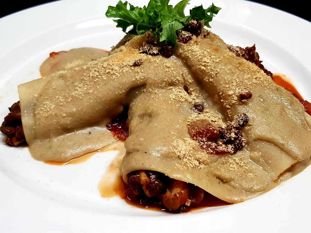 Vegan Cannelloni filled with Lentil and Mushroom Ragout topped with Creamy "Bechamel" Sauce - R155.00