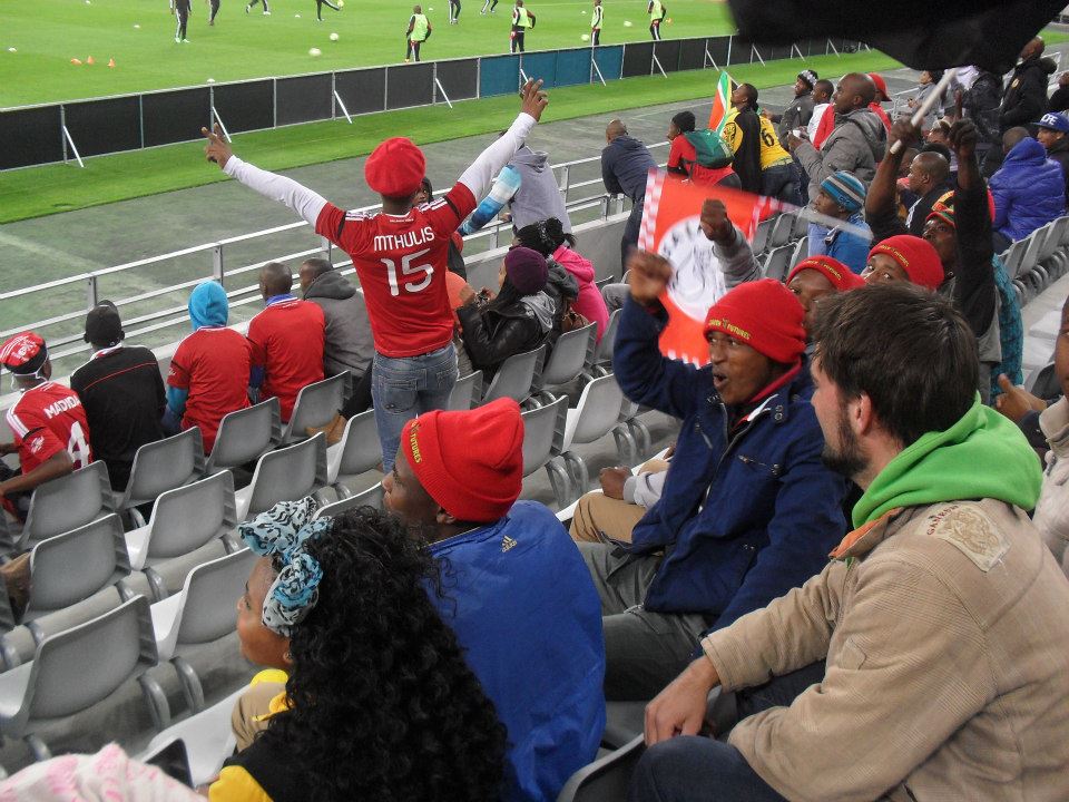The students at the Green Point Stadium watching the Ajax Cape Town vs Orlando Pirates game.