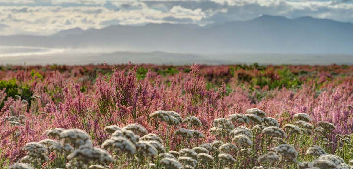 Seemingly triggered by the hues of bright orange and pink that dance across the skies, another palette of colour awakens below. The fields of the Overberg come alive during this time with the uniquely adapted creations that is Fynbos.