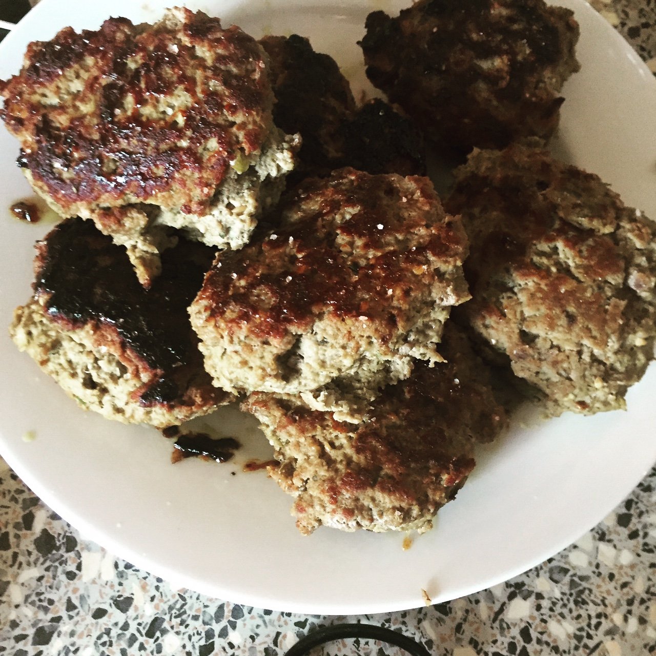 Turn the patties over as they brown and simmer in the pan until they’re cooked through. Keep turning so they don’t burn!
