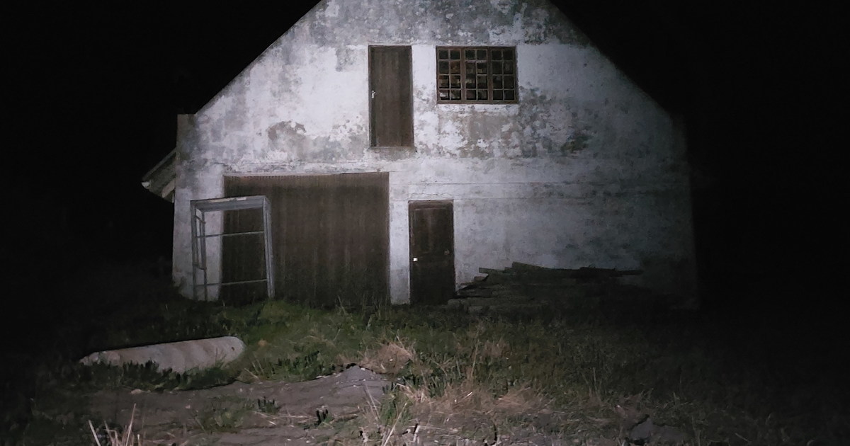 “No lights. It feels like an open field and I can hear frogs in the distance.”