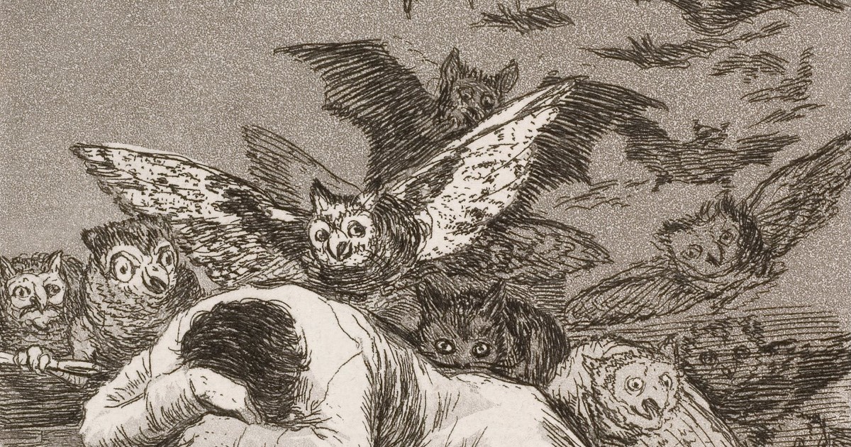 "Sorry, but you look just like the poor bugger in one of Francisco Goya's Los Caprichos aquatints. Maybe you know it. Number 43. The Sleep of Reason."