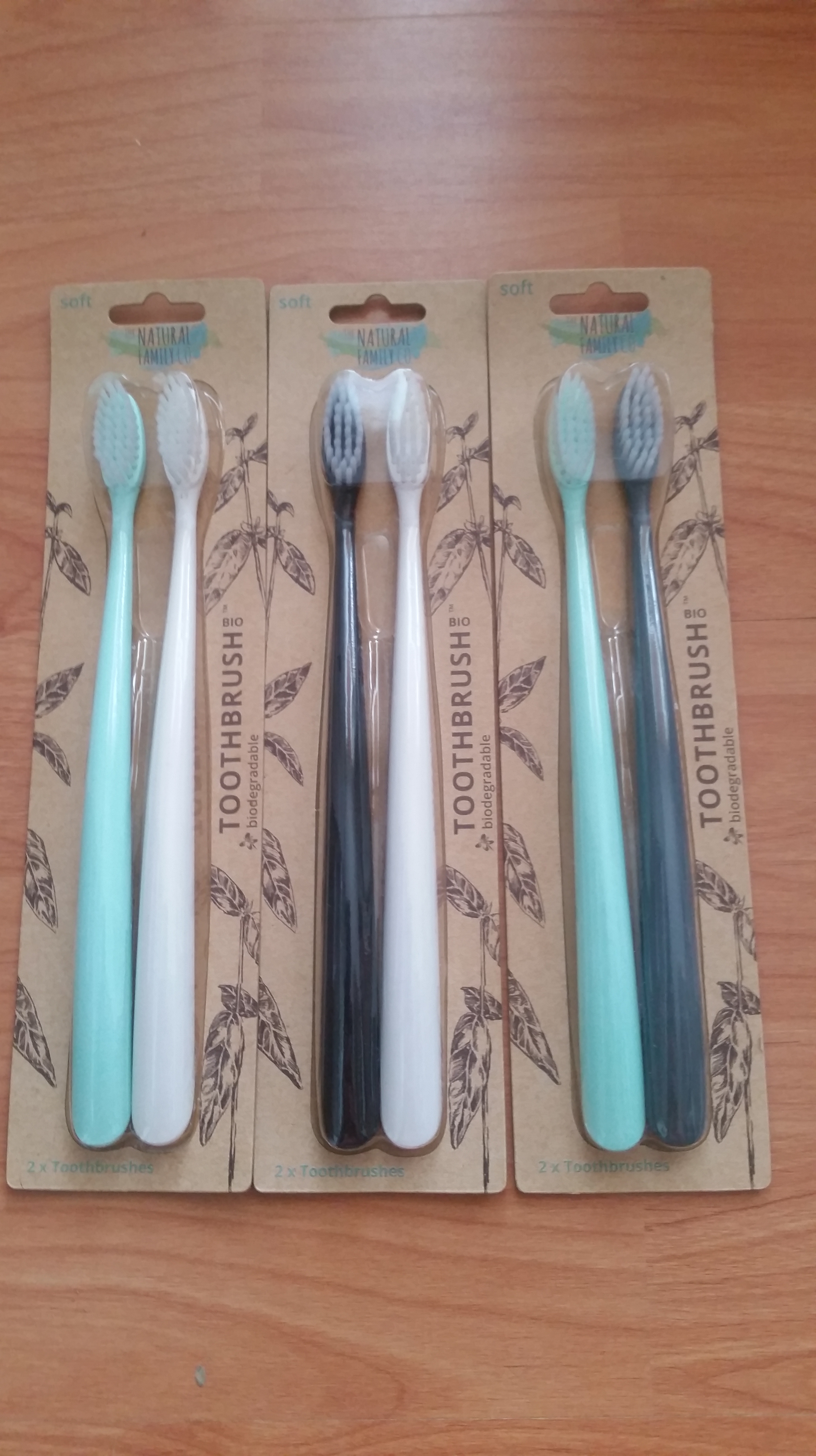 Twinpack biodegradable toothbrush sets (handle made from cornstarch)