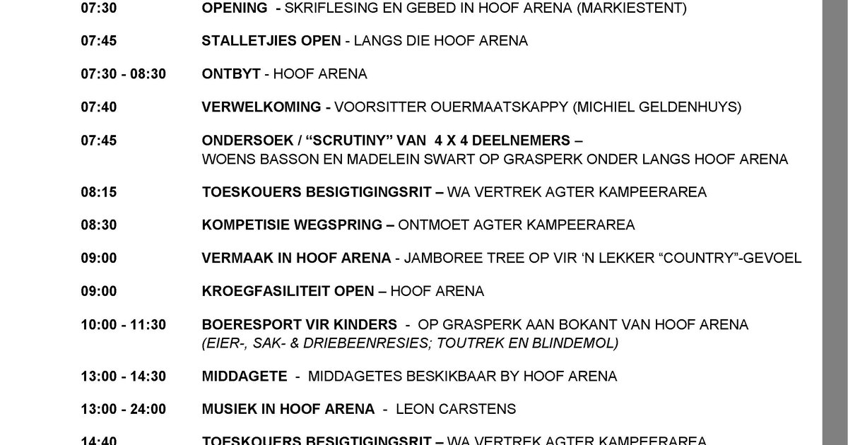 Vind asseblief hiermee ons program vir die 4 X 4 dag wat gaan plaasvind 5 Desember 2015 by Murasie, op die pad na Baardskeerdersbos.