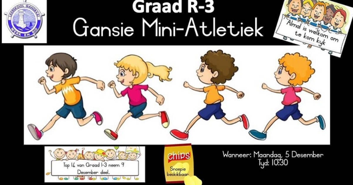 Top 14 van Graad 1 - 3 neem 9 Desember deel aan die mini-atletiek.