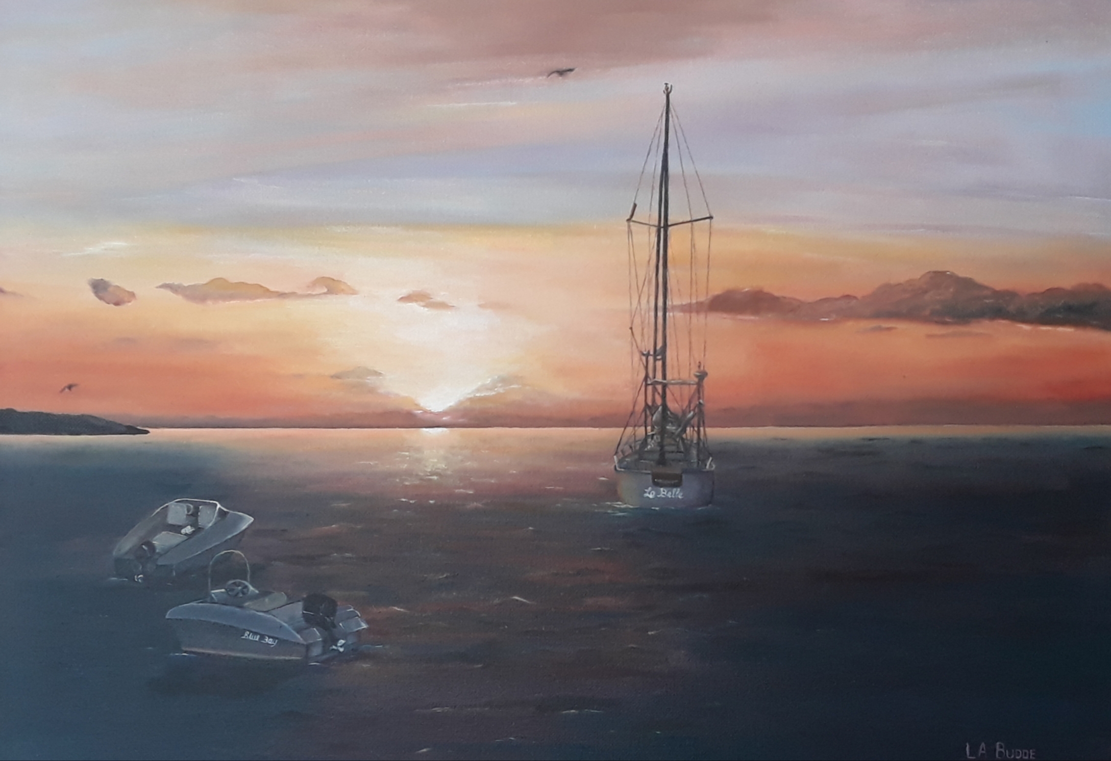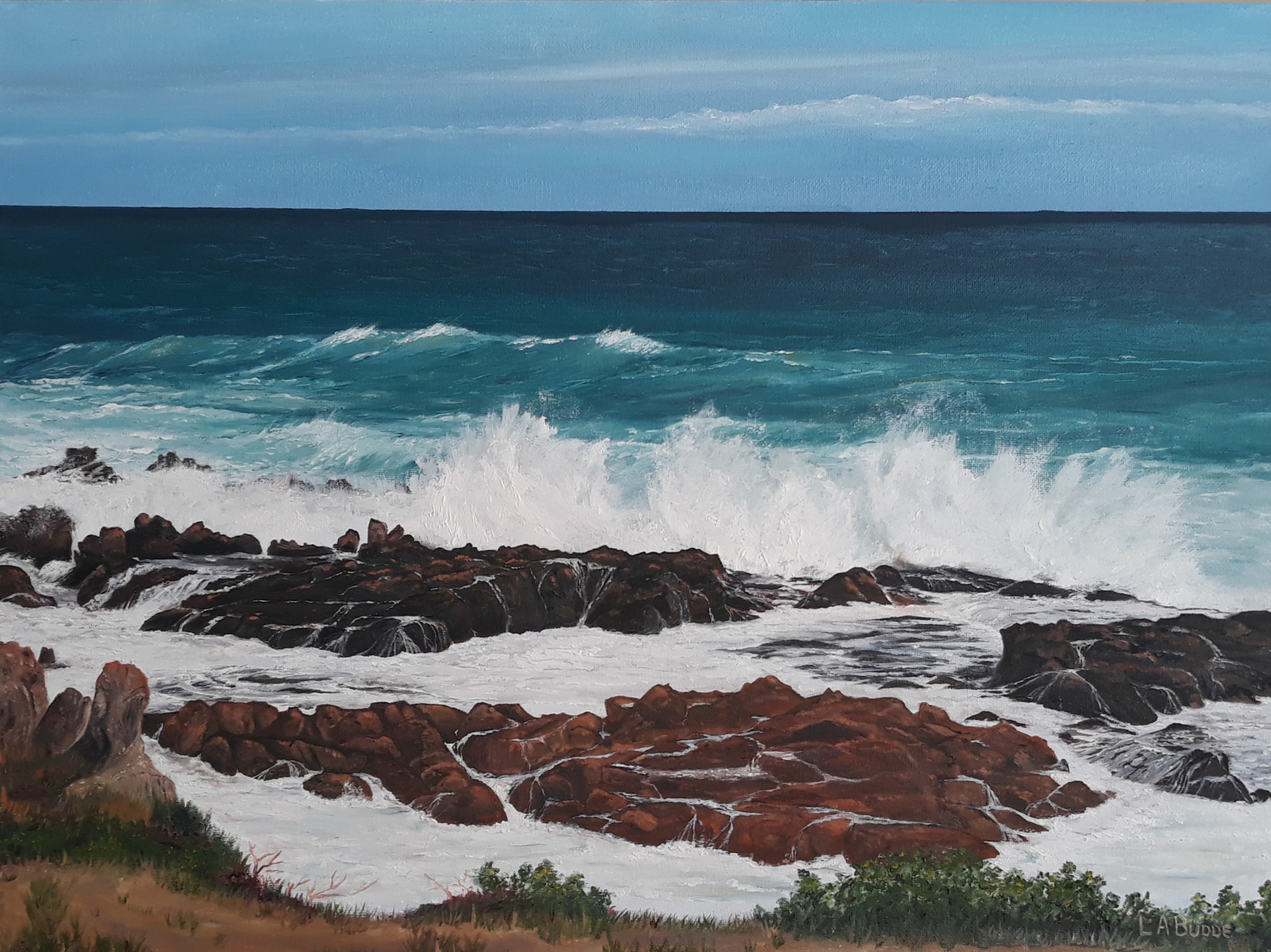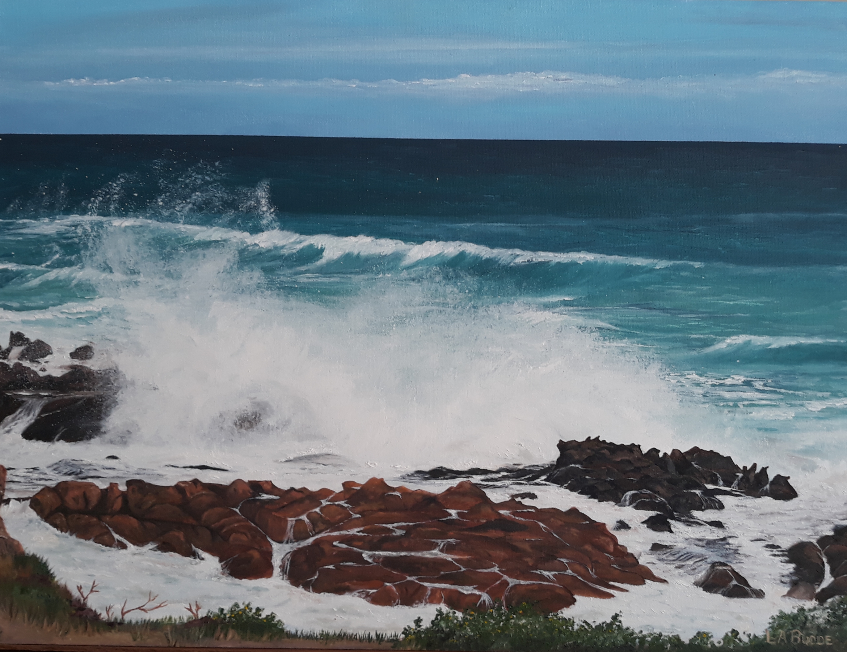 Recently located to De Kelders Linda, is a self taught Artist.Her inspiration for painting began in 2000 after a discussion with a friend on holiday who had just taken up art classes .At first she focused on wildlife, (including the Big 5). However raising children and other business ventures left little opportunity for her to grow her own art as it took up most of her time. She stopped after about a year. Once Linda relocated the passion was reborn in her and with the beautiful, peaceful surroundings of the Overberg region she began painting again, this time it was the sea, ships and the Marine Big 5. After the positive feedback from family and friends Linda decided to peruse her passion full time .Her artwork portrays many places she has visited over time. Her medium of preference is Oil Paint. She is also part of the South African Society of Artists. View by appointment only.