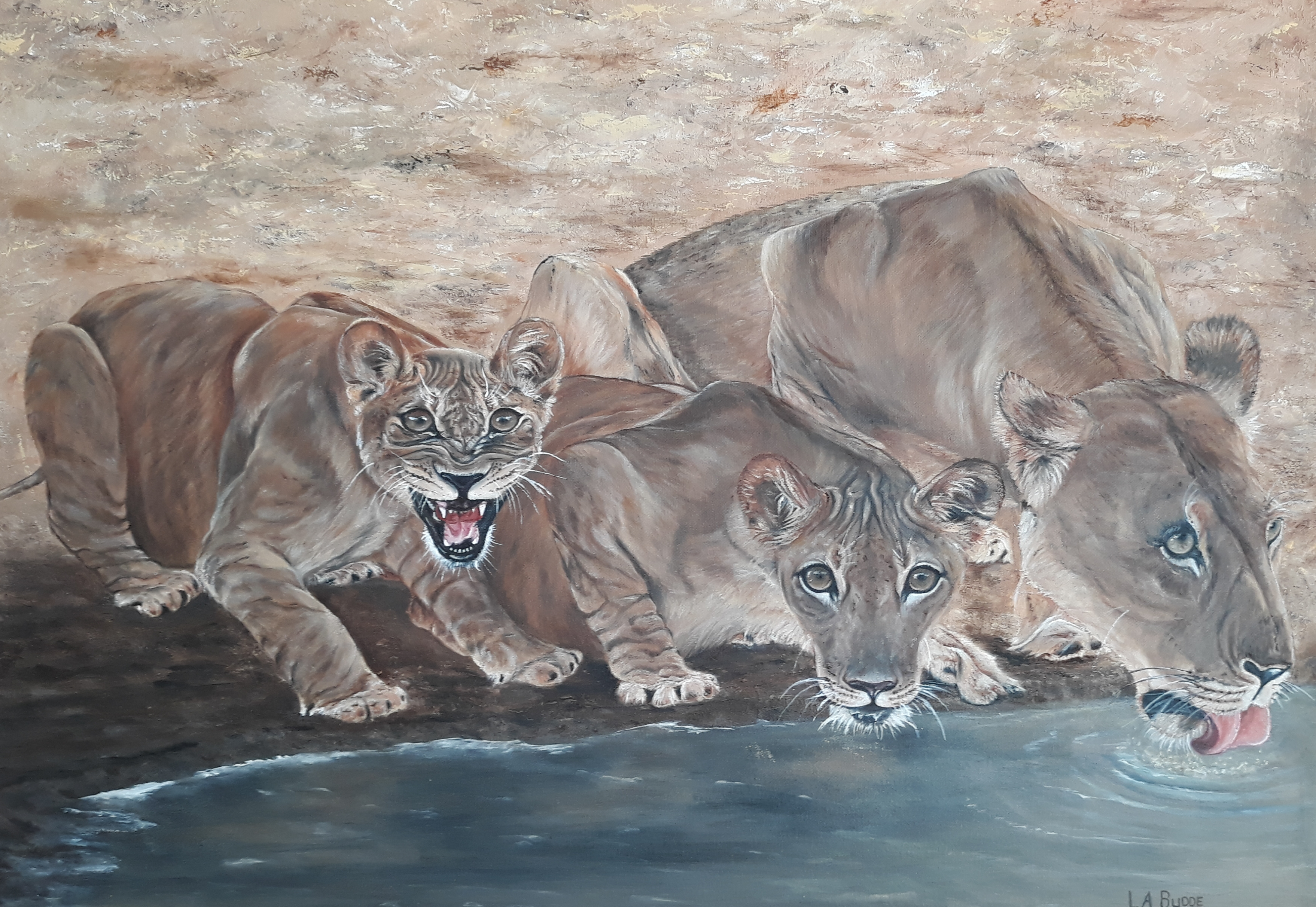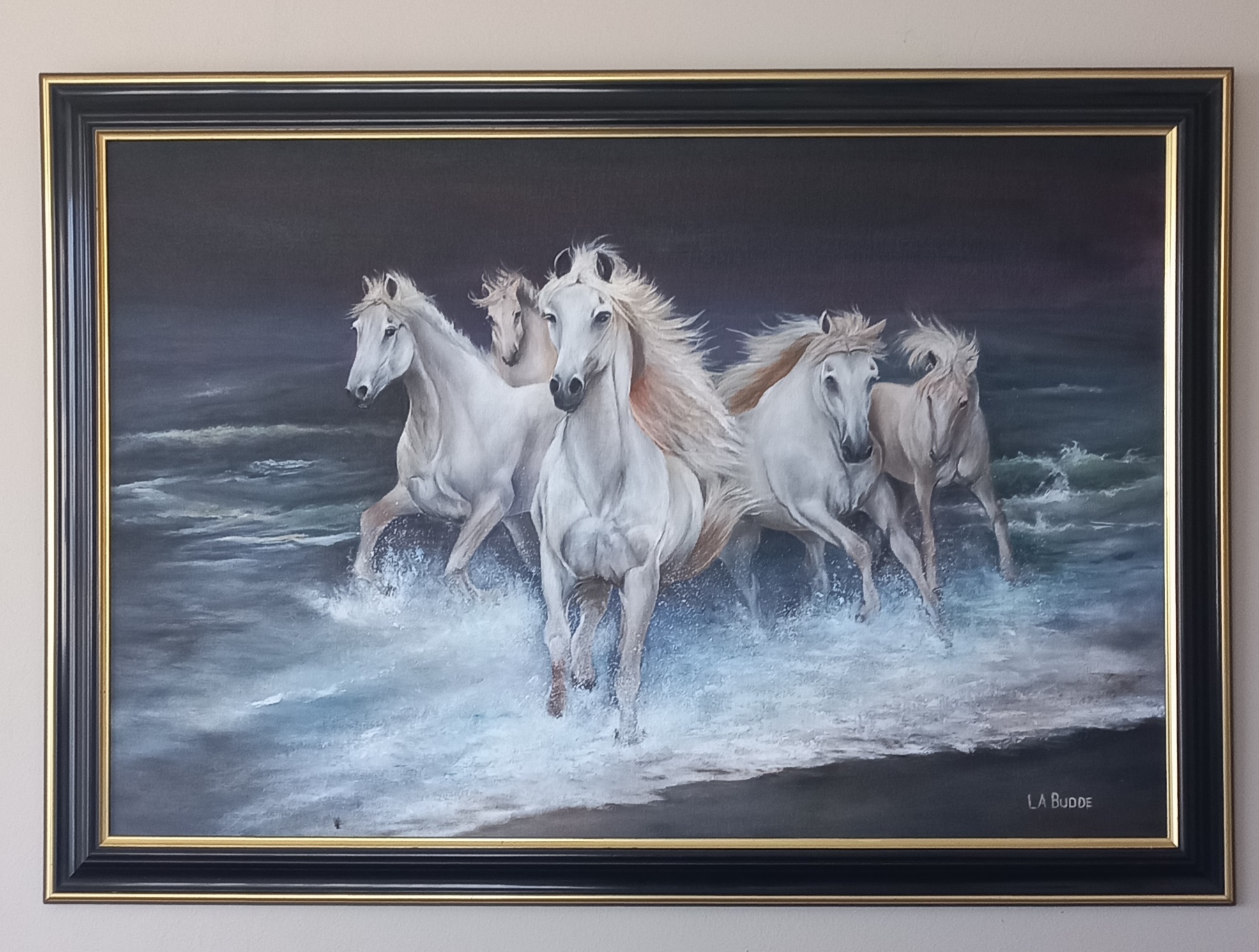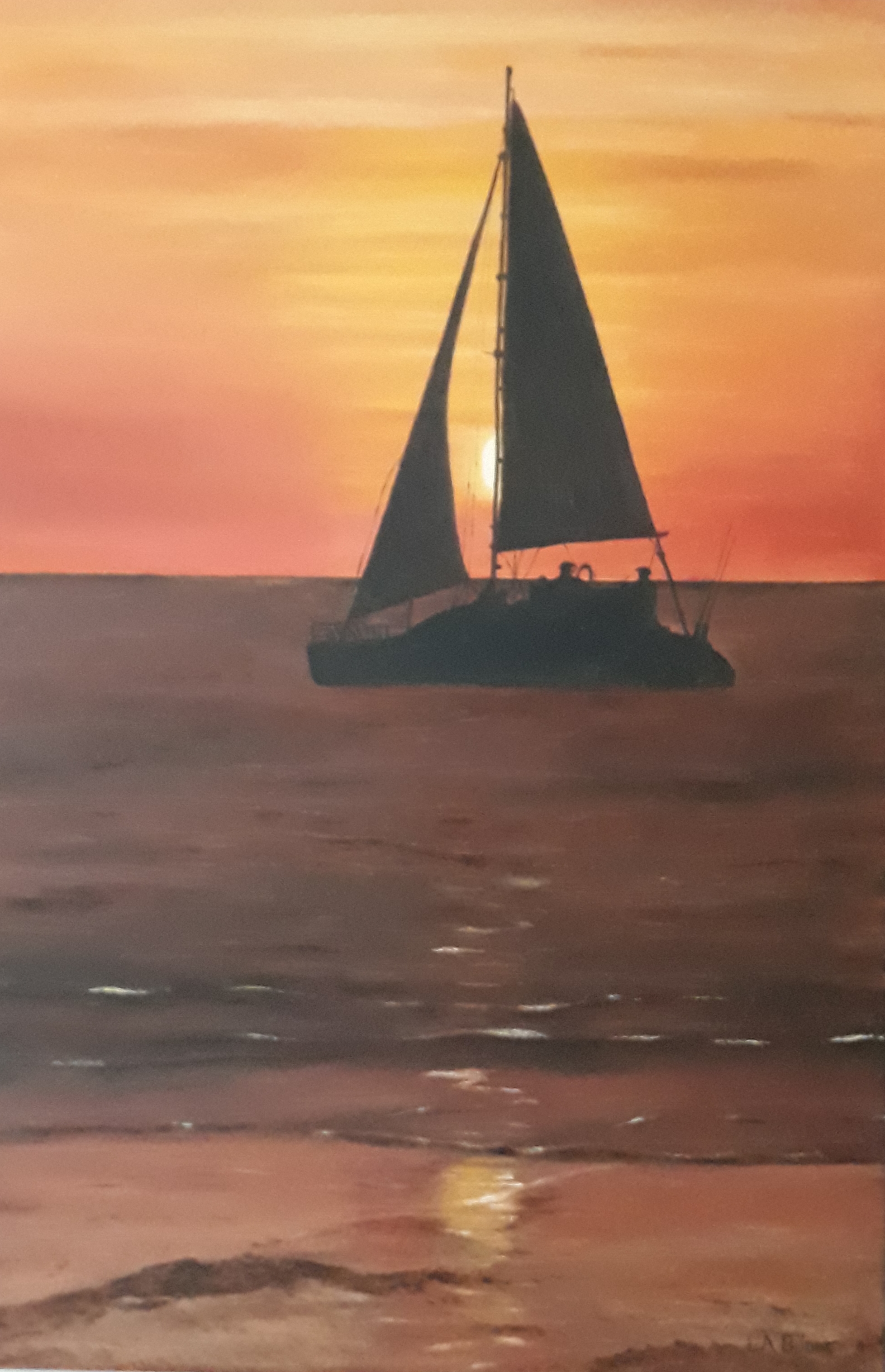Recently located to De Kelders Linda, is a self taught Artist.Her inspiration for painting began in 2000 after a discussion with a friend on holiday who had just taken up art classes .At first she focused on wildlife, (including the Big 5). However raising children and other business ventures left little opportunity for her to grow her own art as it took up most of her time. She stopped after about a year. Once Linda relocated the passion was reborn in her and with the beautiful, peaceful surroundings of the Overberg region she began painting again, this time it was the sea, ships and the Marine Big 5. After the positive feedback from family and friends Linda decided to peruse her passion full time .Her artwork portrays many places she has visited over time. Her medium of preference is Oil Paint. She is also part of the South African Society of Artists. View by appointment only.