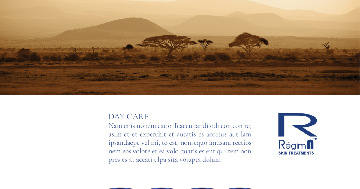 A new branch of RegimA Skin Treatments opened in Europe. Poster design for Europe advertising. Verbal brief by Europe partners was to make it African and neat.