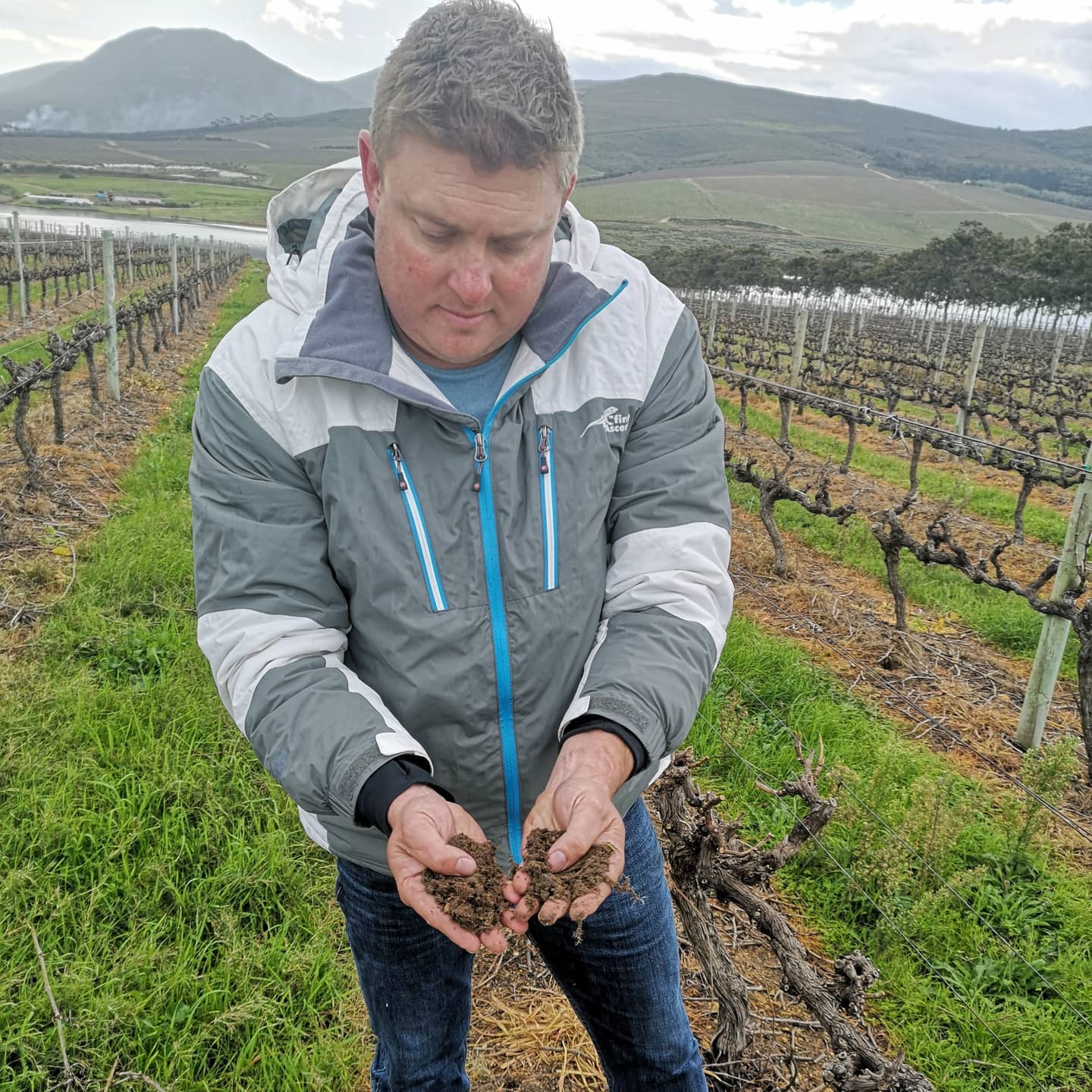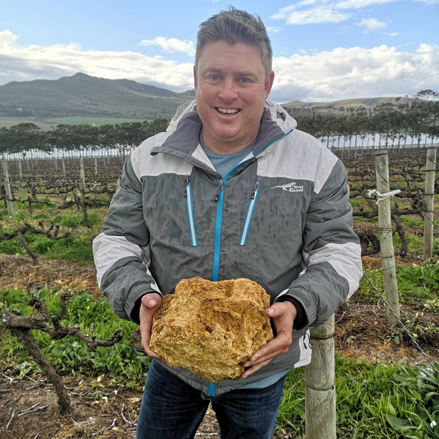 Winemaker, Hannes Meyer, clearly shows us the difference between the two different soils.