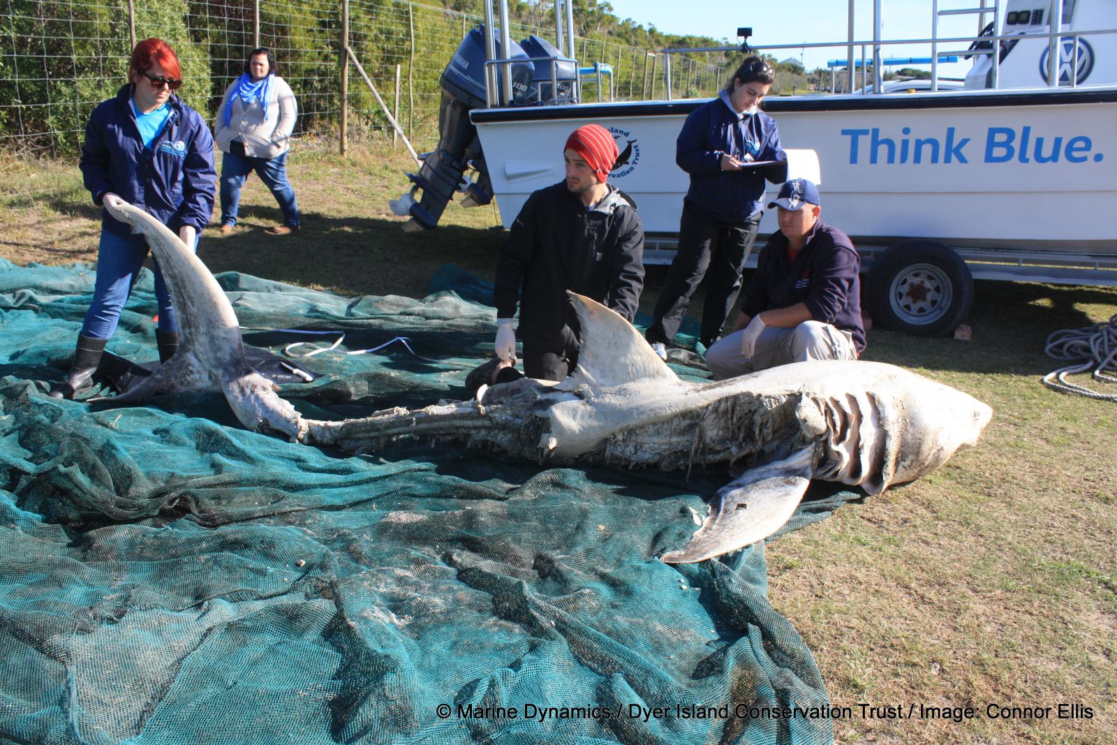 The Dyer Island Conservation Trust (DICT) team was called out on Saturday 24th June 2017 after another deceased shark washed ashore in Pearly Beach, Gansbaai. The DICT team completed another white shark autopsy, led by white shark biologist, Alison Towner.
