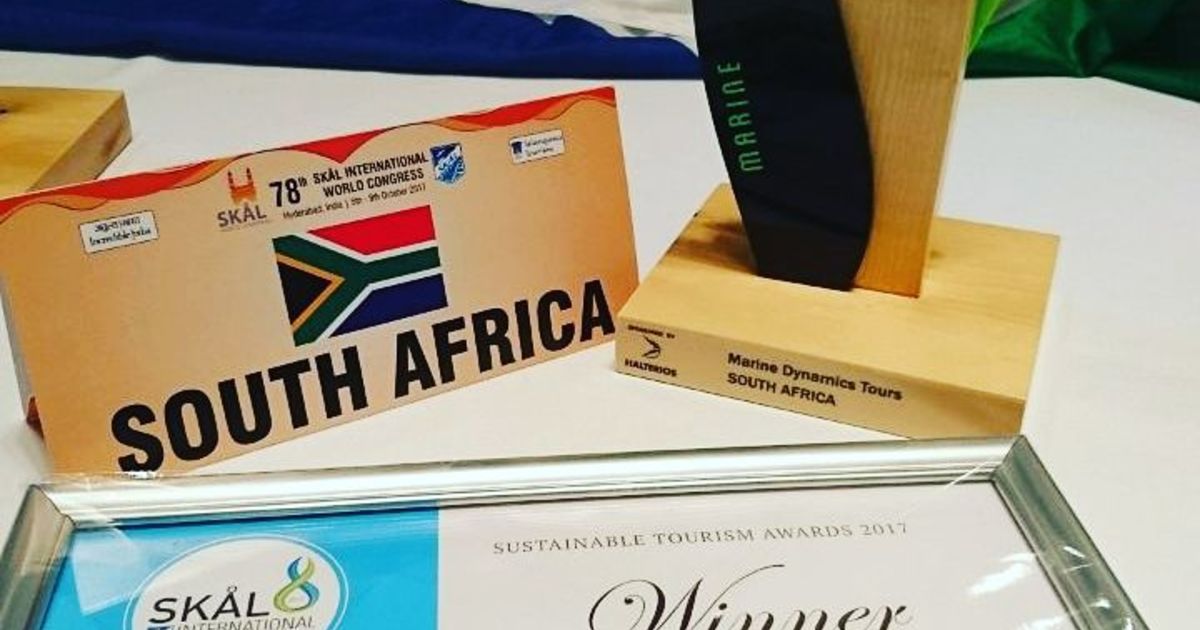 Marine Dynamics wins award for Shark and Whale Eco - Tourism Benefiting Conservation and Community at the Skål World Congress, Sustainable Tourism Awards 2017, in Hyderabad India.