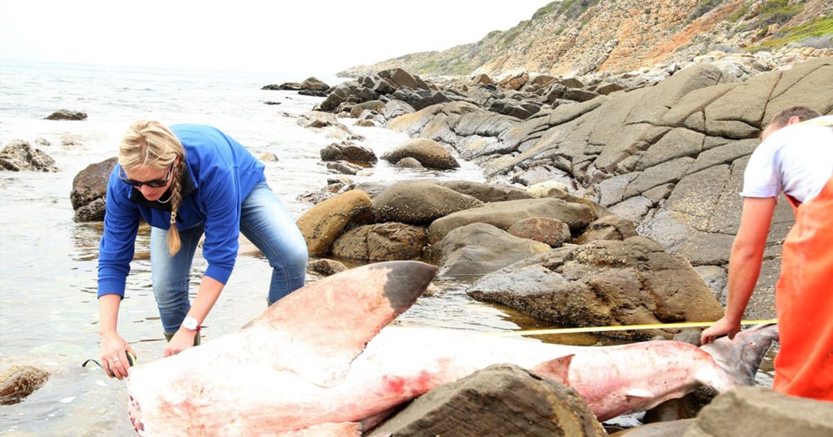 On Saturday the 25th of November a deceased white shark was reported to the South African Shark Conservancy by Ichthyologist, Sarah Halse, from the Breede area. On Sunday the 26th, Dyer Island Conservation Trust’s white shark biologist, Alison Towner, retrieved the shark and brought it back to DICT’s Kleinbaai facility.