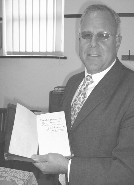 Meneer Barnard skenk die 1ste Afrikaanse Bybel in 1933: Dit is ’n wonderlike gedagte dat die kerk en gemeenskap van Gansbaai ook in 1933 deel van die groot geskiedkundige gebeurtenis was toe die Bybel in Afrikaans uitgereik is.