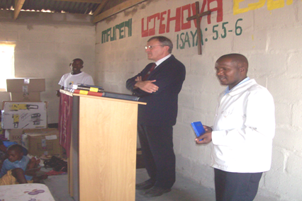 | Die bediening : sending en uitreik met Johan en Elcine Hulme (foto hier bo) en lidmate wat betrokke is by sendingwerk, was die afgelope jaar weer met hart en siel besig met die take wat die Here op hul harte gelê het. Elcine vertel: Ons kan net die Here dank dat alle veranderinge wat in die uitreikaksie plaasgevind het, ter uitbreiding van God se koninkryk is. MAKHATHINI: Gansbaai- gemeente is vanaf 2000 voltyds betrokke by Makhathini en die eerste kerkie is op Hlanganani gedurende 2002 gebou en kerkbankies is voorsien. Bonginkosi, die sendeling wat ook deur ons gemeente geldelik ondersteun word, het begin met ‘n boomkerkie. Later het hy sy eie “kerkie” gebou en Gansbaai-gemeente het in 2009 ‘n kerkie in sy wyk in Kwandaba gebou. Hy het begin met 1 wyk en bedien tans Gods Woord in 3 wyke. Gansbaai-gemeente het in 2011 ook ‘n kerkie in sy wyk by Bhek’ Abantu gaan bou. Tans is die uitreikaksie besig om geld in te samel sodat hulle hom kan help met die bou van ‘n kerkie in sy derde wyk by Mbangweni. Die skenking van ‘n bakkie aan Bonginkosi het gehelp dat hy meer mense kan bereik en nie meer nodig gehad het om met ‘n fiets te ry nie. Hy is ook betrokke by ‘n wyk in Mosambiek wat hy twee keer per jaar besoek. Lindiwe, Bonginkosi se vrou, het ‘n kleuterskool begin met 12 kinders en tans is daar 97 kinders in haar kleuterskool. Die vrouediens betaal vir haar opleiding en sy het nog ‘n jaar om haar kwalifikasie te voltooi, Sy sê dat sy die kinders “Zulu, Engels en van God leer.” UITREIK : PLAAS-BEDIENING : Die plaasbediening het begin deur op verskillende plase kerk te hou. Tans word daar elke tweede Sondag ‘n diens in Baardskeerdersbos se gemeenskapsaal gehou. Die Pinksterdienste word ook daar gehou. Daar word ook Nagmaaldienste gehou. Die lidmate het groot waardering en voel dat die Here hulle seën. Hulle het ook op 10 Oktober ‘n basaar gehou en op 6 Desember hou hulle hul eie Kerssangdiens. RUSLAND: Ons gemeente is ook betrokke by sendeling Ernst Toerien in Rusland. Daar word jaarliks ‘n deurkollekte vir hom gehou. Hy was eers net betrokke by die kinderbediening en het nou sy eie gemeente. Uit Rusland skryf Ernst en sy vrou gereeld per epos aan dr. Dawie en Alethea Pansegrouw. In hul laaste skrywe sê hulle dankie vir die gemeente se ondersteu- TRANSKEI: Gansbaai-gemeente is ook steeds betrokke by ds. Christo Wooding in Transkei deur finansiële bydraes. Met ‘n besoek, in Augustus vanjaar, deur Johan en ander lidmate, was hulle aangenaam verras om te sien dat ‘n kerkie wat in 1996 by Waterloo gebou is en restourasie nodig gehad het, self deur gemeentelede van Waterloo op eie inisiatief gerestoureer is. Ds.Wooding het ‘n baie groot gebied wat hy bedien. SILWERJARE-TEHUIS: Deur die jare word daar uitgereik na Silwerjare-tehuis in Blompark. Die 5de November is daar ‘n Kersete aangebied deur die uitreikkomitee en geskenkies is oorhandig. Daar word ook vermaak vir hulle gereël. Van die kommentaar wat na die funksie ontvang is: “Fantasties! Iets wat van die Here af kom.” en: “Ons geniet dit tussen ou mense, het self oud geword.