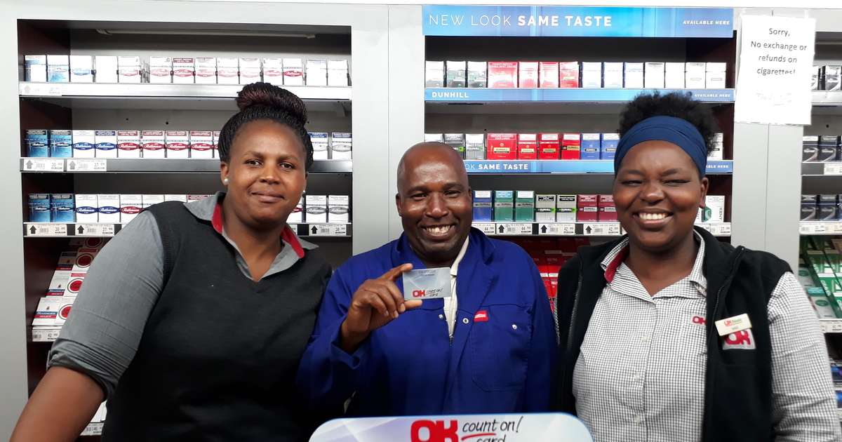 Titan Bulelani from Masakhane is our week 3 winner of the OK Loyalty Card 'Cashback' promotion. Khutala and Nandi from OK Foods Gansbaai handed over his prize.