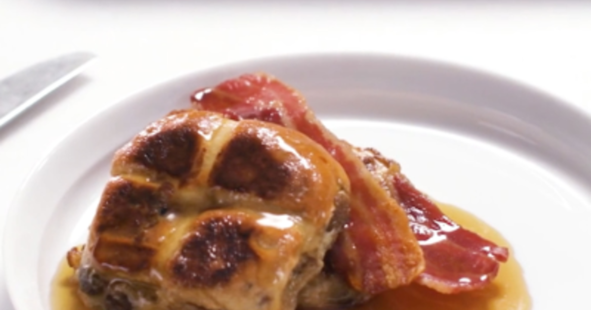 1. Cut the four Hot Cross Buns in half.