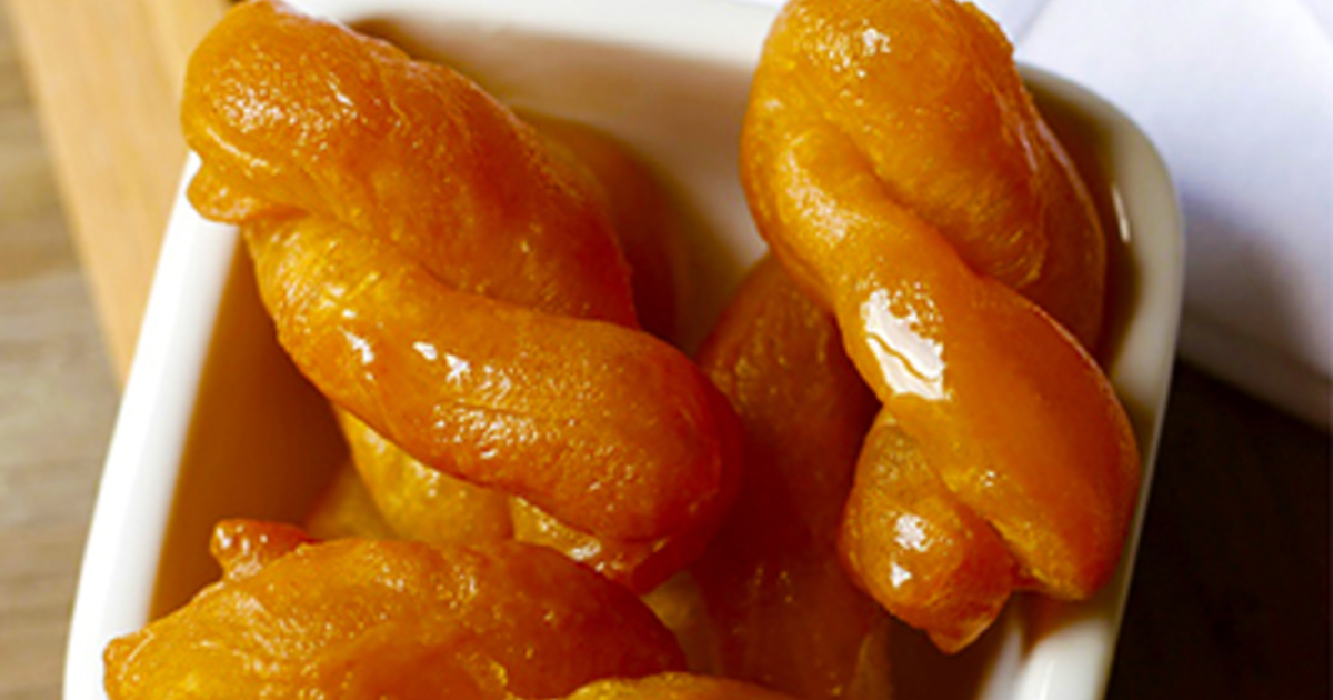13. Take the koeksisters and using a slotted spoon, carefully place them in the hot oil.