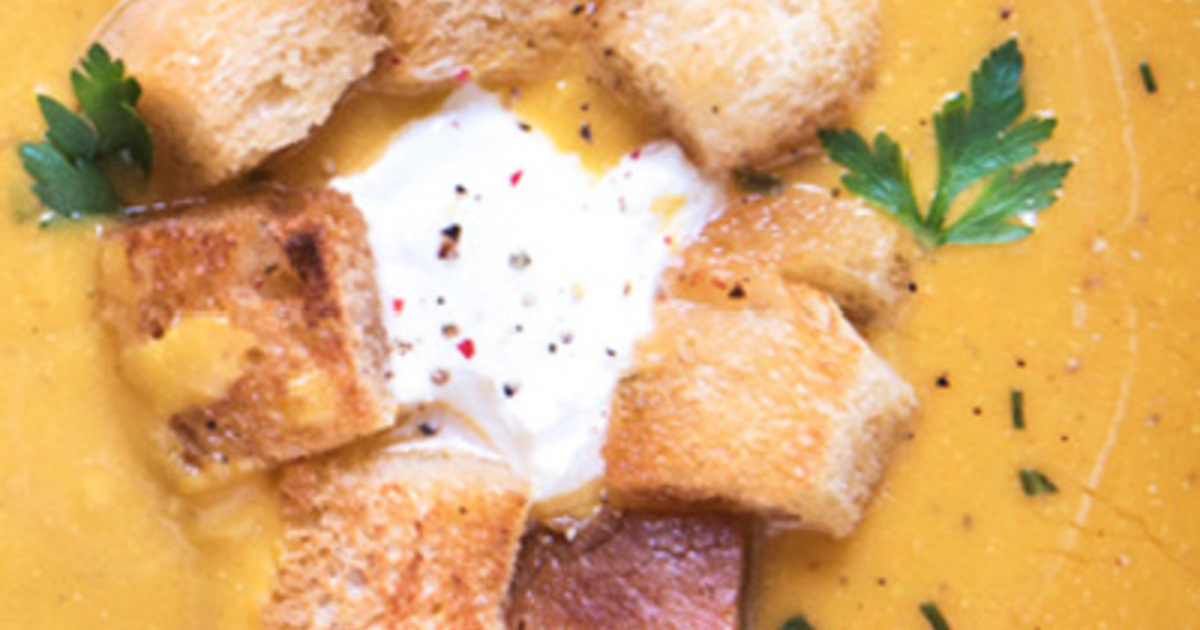 Nothing warms you up quite as nicely as a steaming bowl of delicious pumpkin soup when there’s a chill in the air. This hearty recipe is really simple to make and promises warm smiling faces all around the dinner table.
