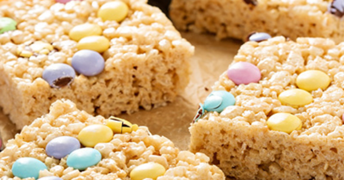 • In a large saucepan, melt butter over low heat. Add marshmallows and stir until completely melted. Remove from heat.