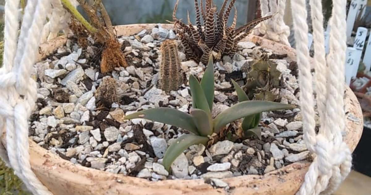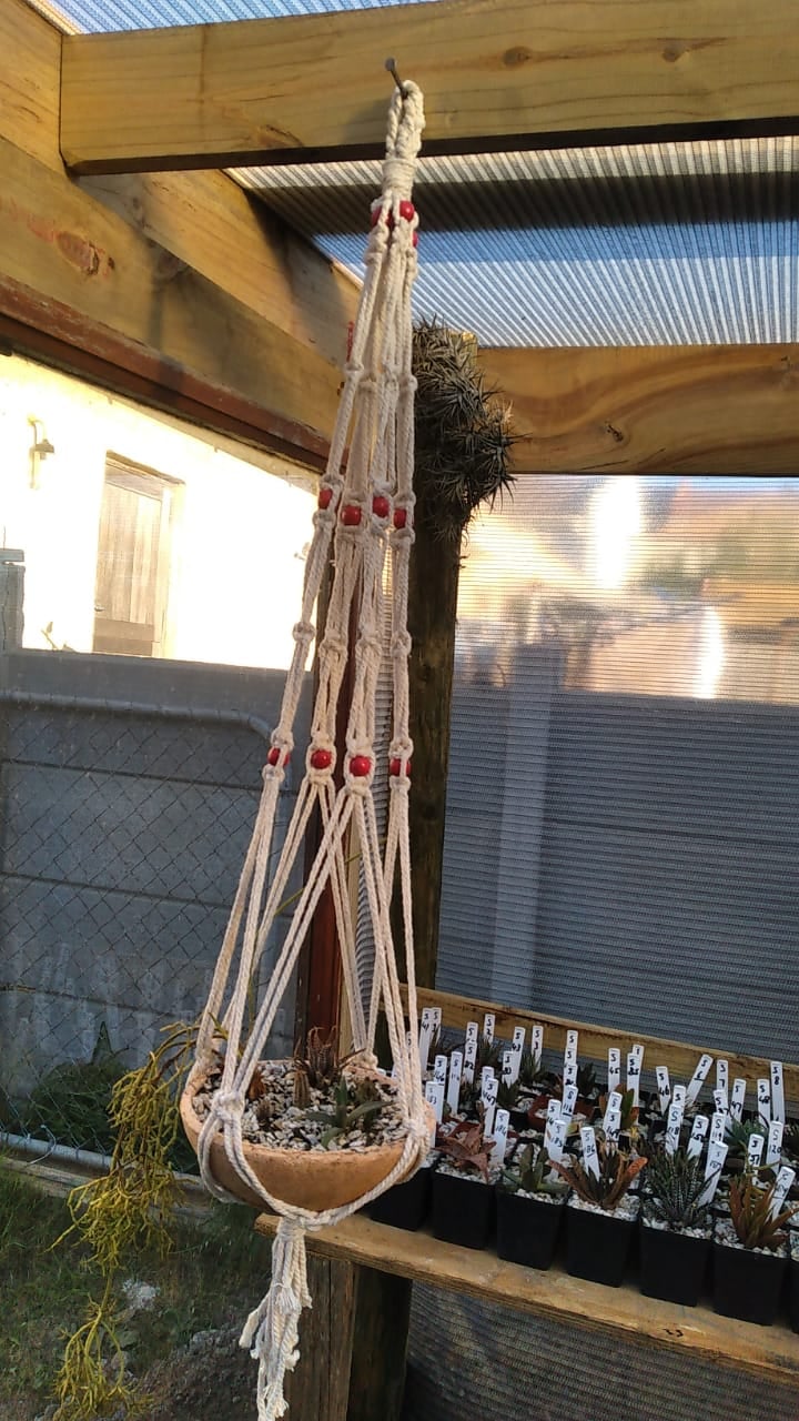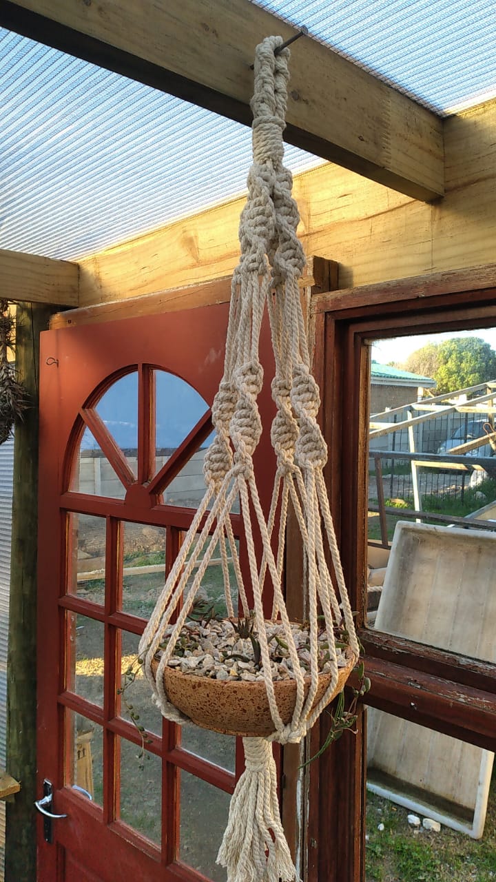 Stunning macramé with hanging clay pots with cacti and succulent plants in for only R350.00 (per order only), or come and select your landscape inside the clay pots. Includes 6 plants, additional plants at R45.00 per plant (cacti or succulents).