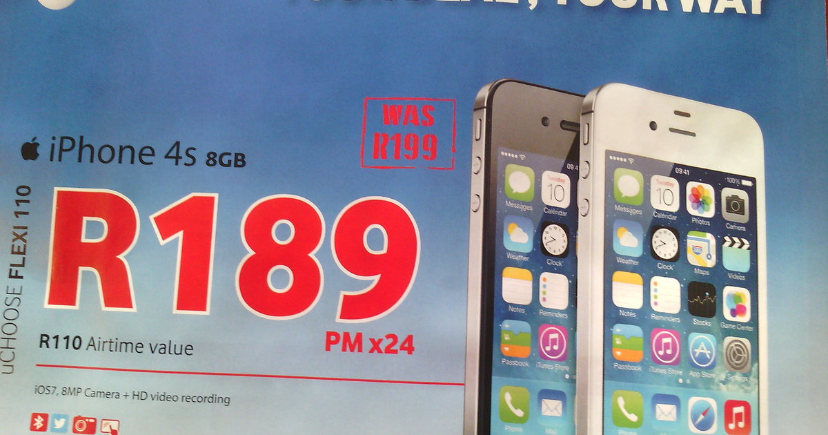 Now everyone can afford an iPhone. Get the iPhone 4s 8GB for R169 per month and you will get R110 airtime back. The best of all is that this deal is for everyone - new applications as well as upgrade customers. Need data? Then get the iPhone 4s 8GB @ R189 per month with R110 airtime and 1GB data for the first three months. The phone is available in black or white.