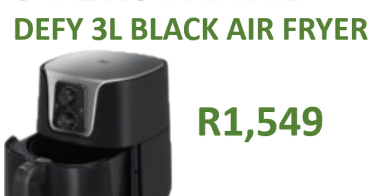 New stock! Defy 3L Air Fryer available at Overstrand Meubels for only R1549.00.