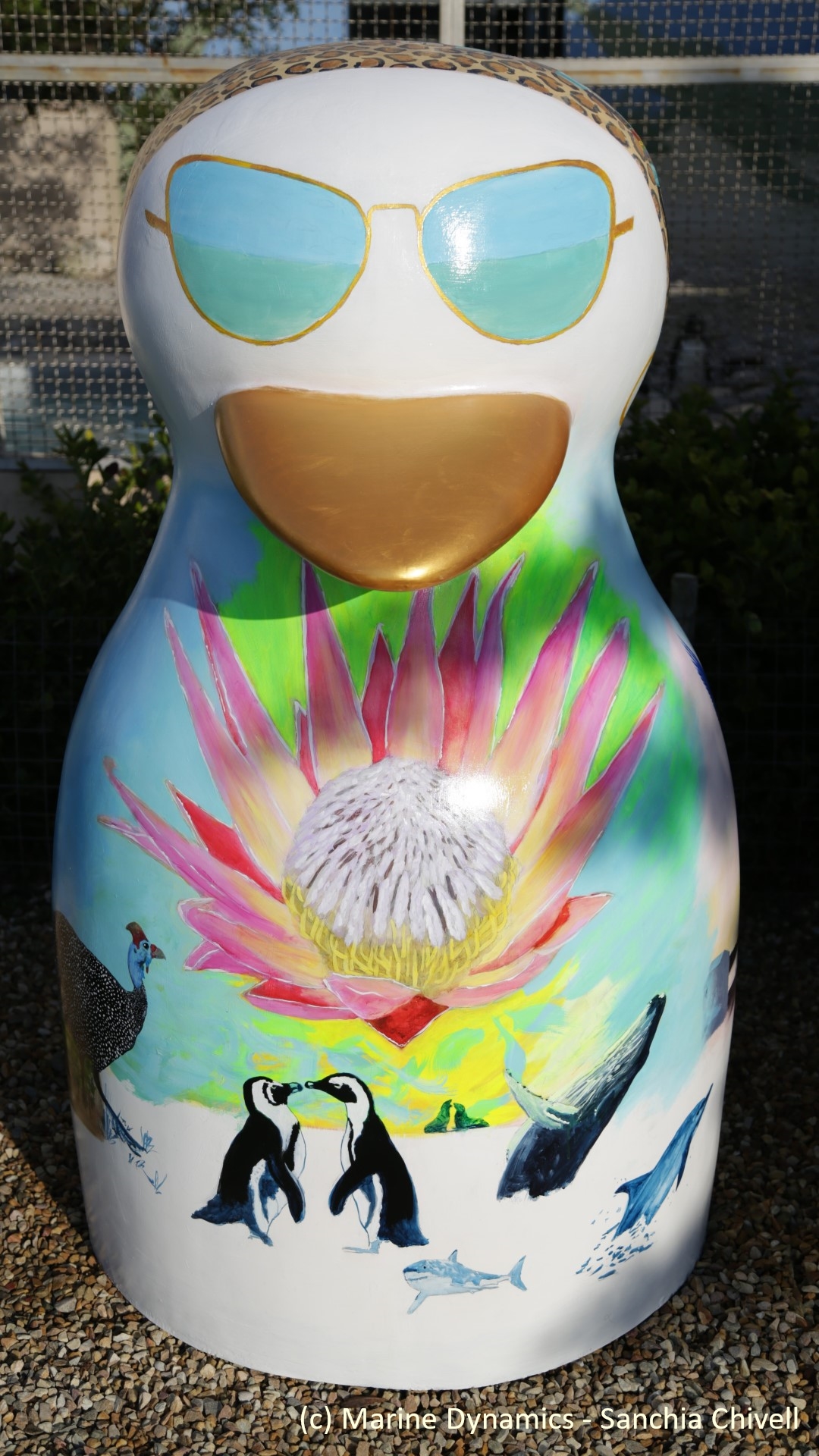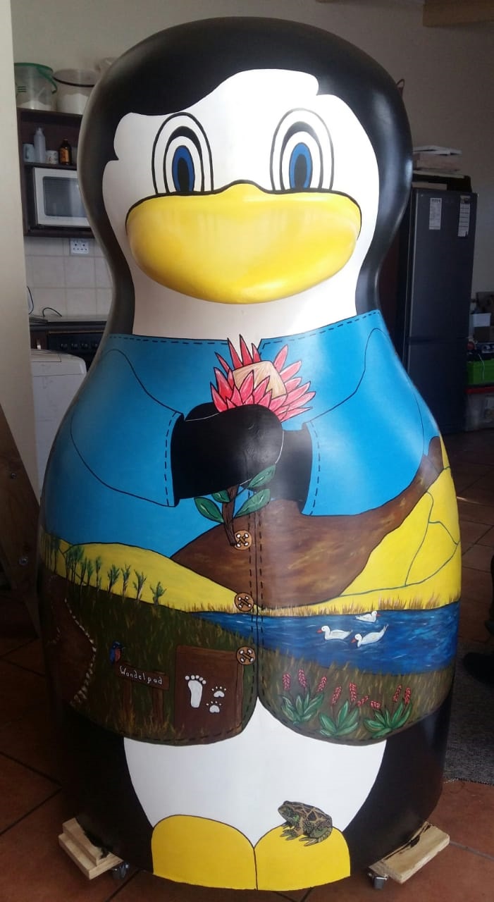 Phumla is the most voluptuous of all the penguins. Her theme represents the African penguin and because she was the inspiration for the Overberg Penguin Campaign, considers herself the mascot for this endangered species.