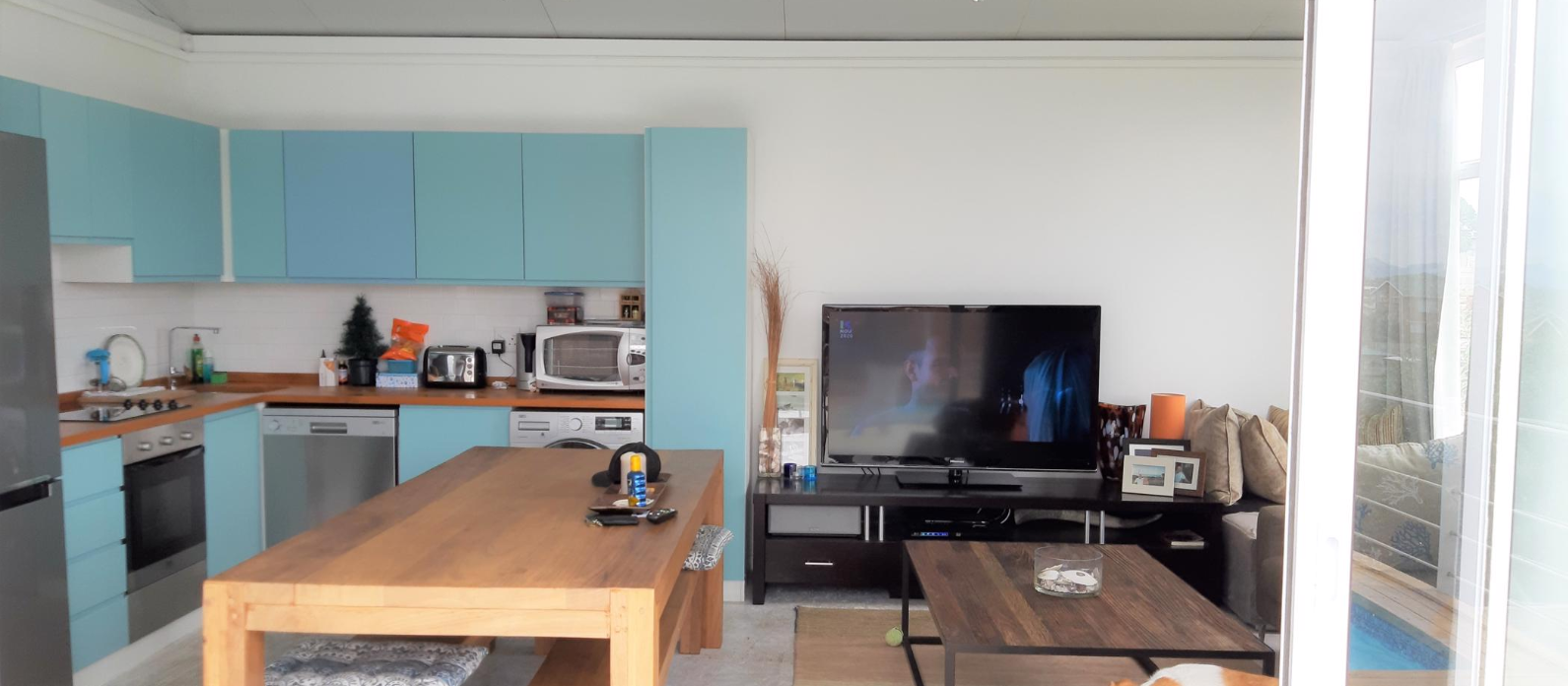 This modern sunny 3 bedroom home offers an open plan spacious kitchen with all the modern trimmings. Dining and living area with sliding doors opening onto a deck area with a sparkling swimming pool. Enclosed erf with motorised sliding gate and off-street parking for at least 6 cars. Enjoy breathtaking views and sunsets over Walkerbay.