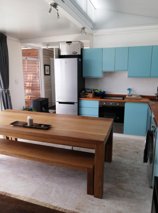 The house is constructed using a metal tubing framework and chromadek IBR cladding (Flame retardent) and calcium silicate board cladding on the inside. Nutec roof using diamondek roof sheets and insulated with cellulose fibre. Flooring throughout is 22mm shutter ply.