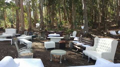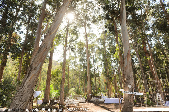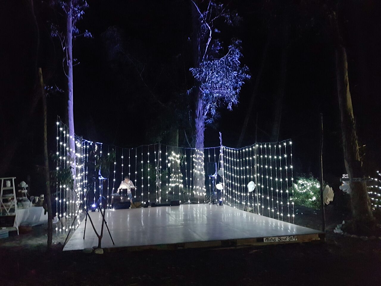 What made this wedding different from your usual wedding, was the fact that the reception was also held in the woods and instead of your usual covered tables we had to build white-lounges for the guests. A Woodend dance floor was built by us for them which was surrounded by fairy light that was done by "Blink Idees".