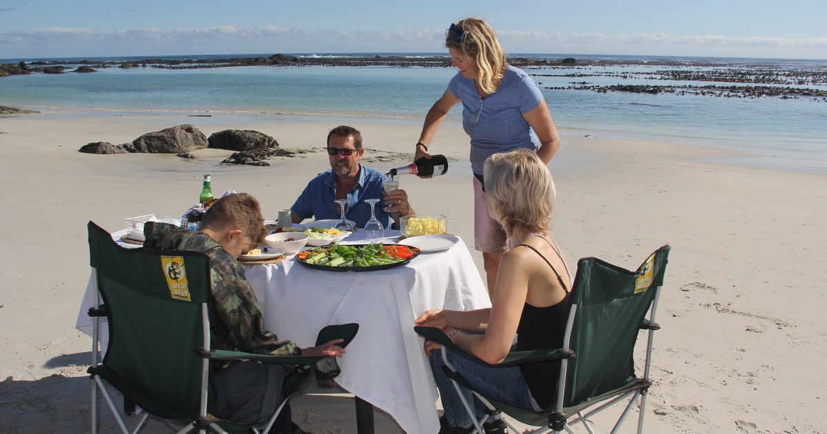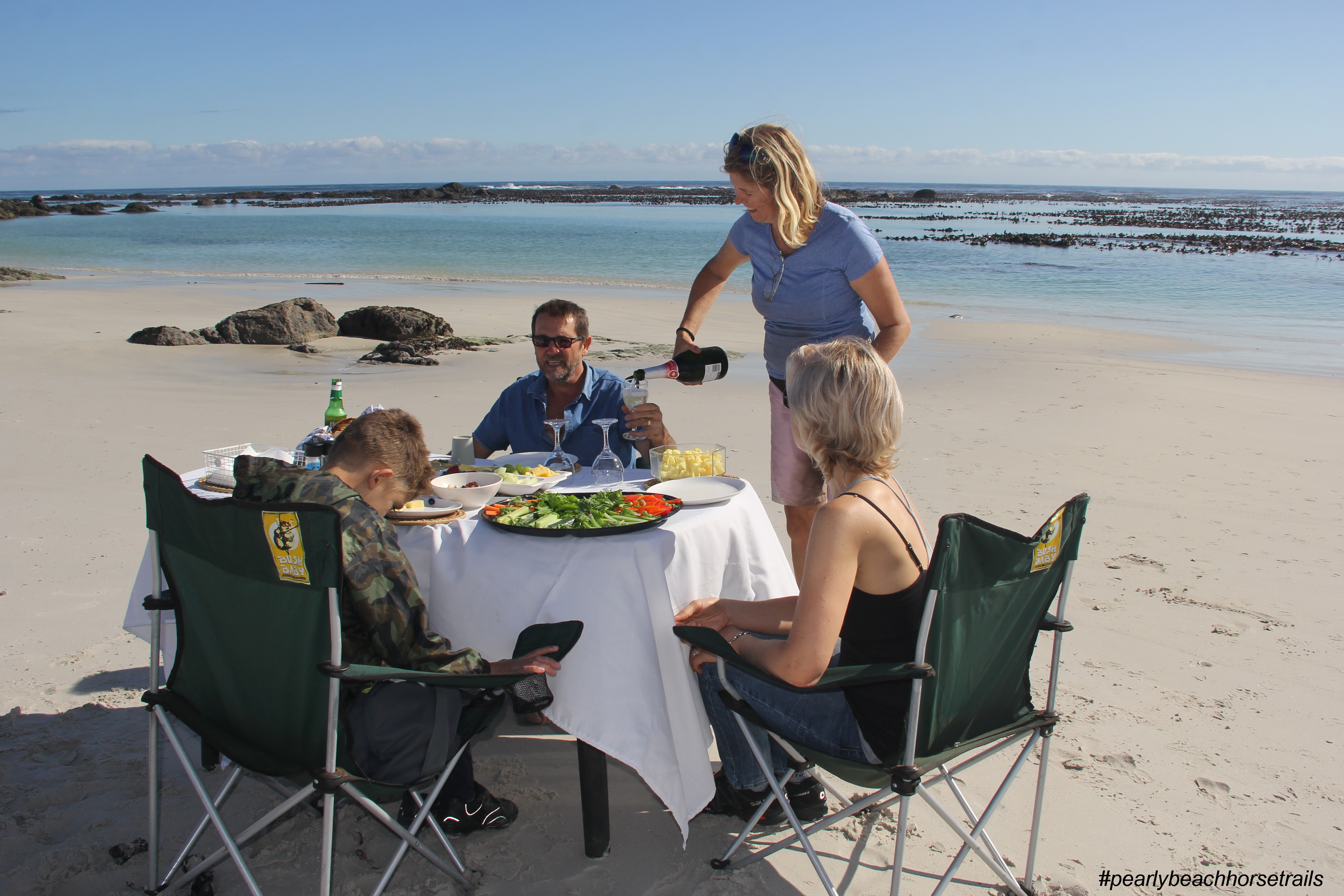 Kos and Christopher did us proud, setting out the table of goodies close to the water's edge, for re-fuelling, and of course cracking open a bottle of bubbly for a toast. Mom, and then father and son, took turns swimming with Kimo in the tidal pool, and thoroughly enjoyed their first ever experience of “riding the waves”!