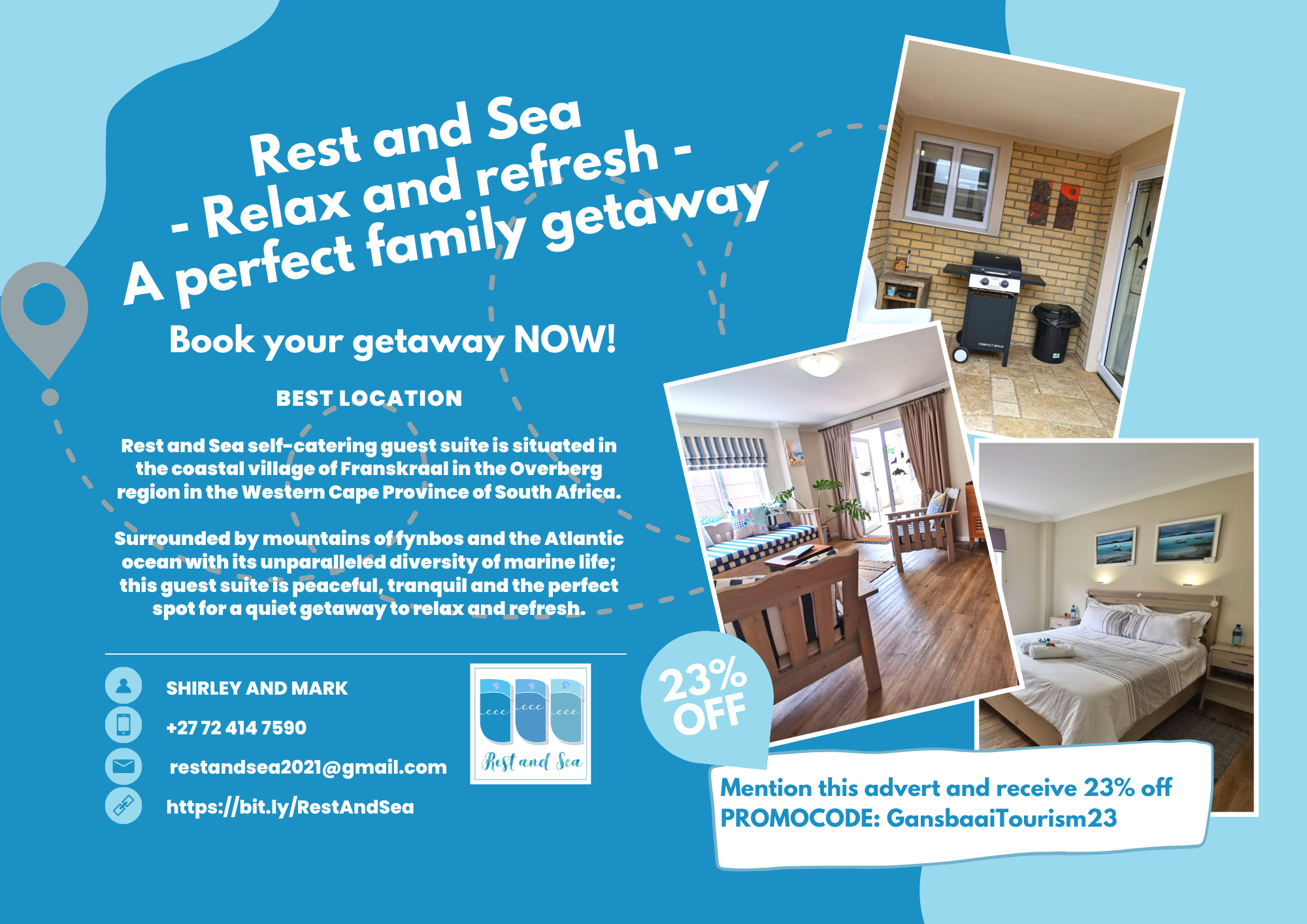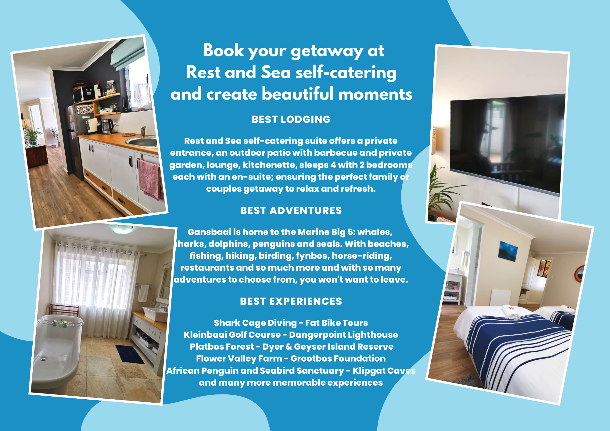 Create beautiful memories and book with Rest and Sea Self-catering. Mention this Gansbaai Tourism Advert and r...